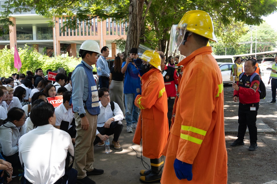 On August 20, 2025, the Faculty of Information and Communication Technology, Mahidol University (ICT Mahidol), led by Lect. Snit Sanghlao, Assistant Dean for Engineering and Environment and Director of the Fire Prevention and Suppression Plan, together with the Safety, Occupational Health, and Workplace Environment Working Group, organized the “2025 Fire Evacuation Drill” for its staff and students at ICT Building, Salaya Campus. On this occasion, staff from the Center for Occupation Safety, Health and Environment Management (COSHEM), and the Salaya Sub-District Administrative Organization were present to observe the drill.