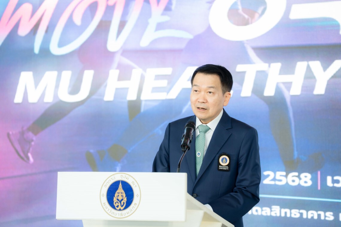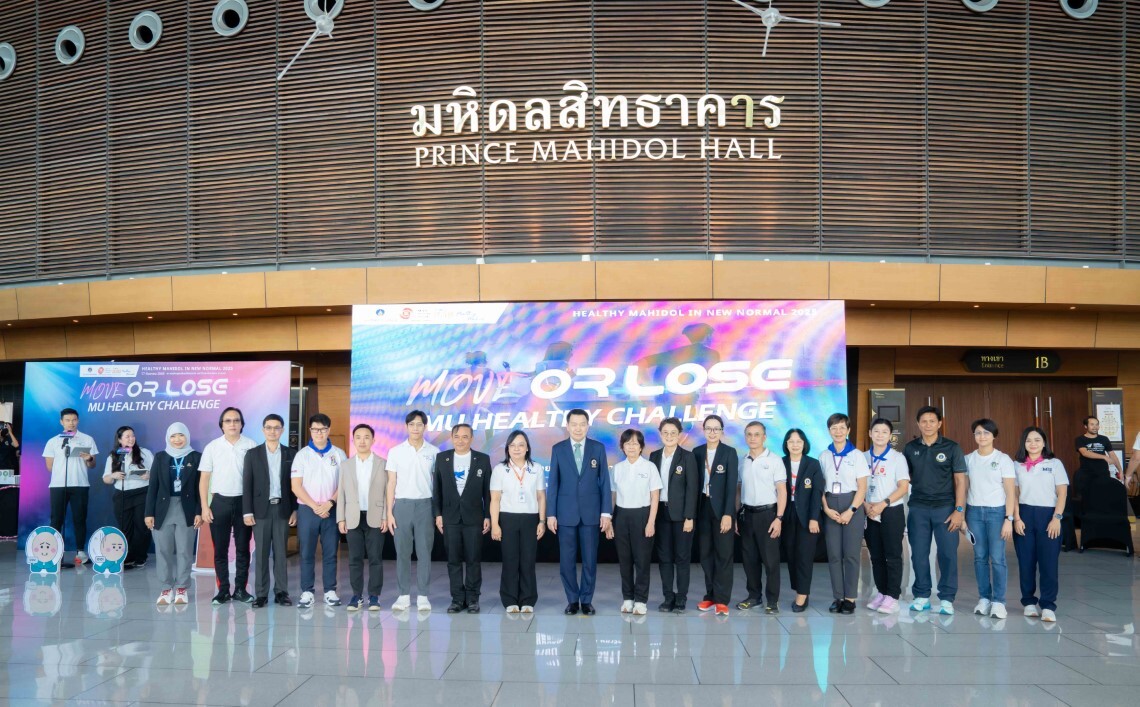 The event featured various activities, including exhibition boards and infographic media showcasing knowledge on health and well-being of staff and students, as well as health booths from different faculties/institutes providing information and organizing health-promoting activities. A highlight of the event was the “MOVE OR LOSE MU HEALTHY CHALLENGE”, an activity inspired by the concept of Squid Game and adapted into a health-themed obstacle competition, which invited staff members from all faculties/institutes of Mahidol University to participate.