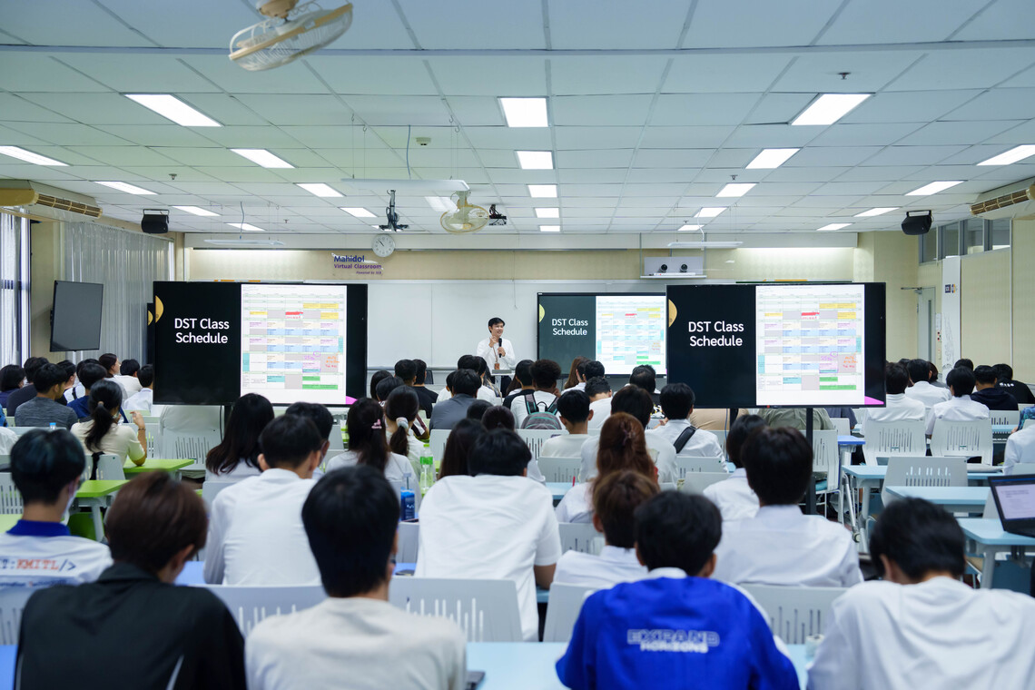 On July 1, 2024, the Faculty of Information and Communication Technology at Mahidol University (ICT Mahidol) held the “ICT and DST Information Sessions” for first-year students enrolled in the B.Sc. in Information and Communication Technology (ICT International Program) and the B.Sc. in Digital Science and Technology (DST Thai Program) for the Academic Year 2024. The purpose of these sessions was to introduce the Preparatory Program and provide information about the curriculum for each program.