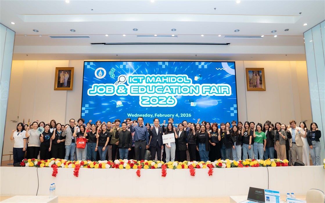 The “ICT Mahidol Job and Education Fair 2026” marked the 17th consecutive year of the event organized by the Faculty of Information and Communication Technology. The fair aims to provide students with opportunities to connect with leading information technology companies through job recruitment, internship placements, and guidance on further education abroad. On this occasion, more than 70 companies and educational institutions participated by hosting exhibition booths. The fair attracted a large number of ICT students, students from other faculties within Mahidol University, as well as members of the general public, reflecting the strong response and overall success of the event.