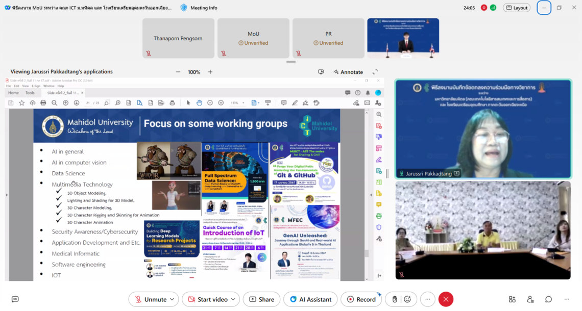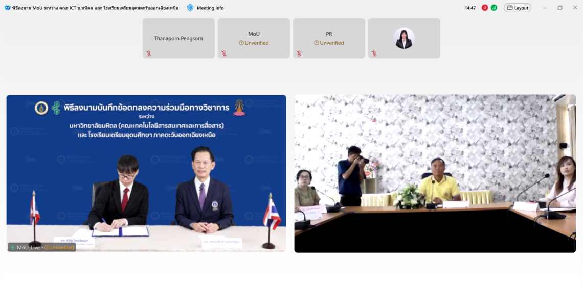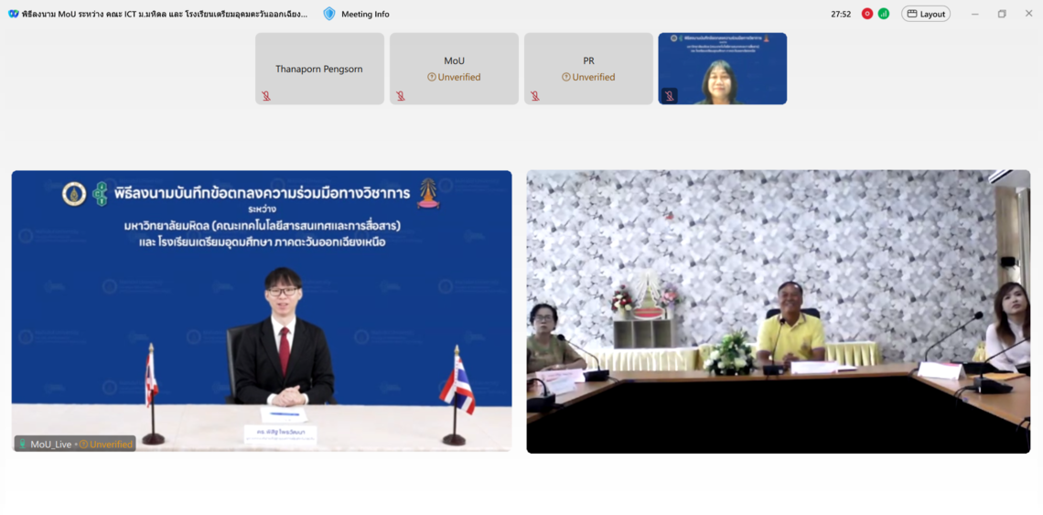 On July 11, 2024, Dr. Pattanasak Mongkolwat, Dean of the Faculty of Information and Communication Technology at Mahidol University (ICT Mahidol), along with Dr. Prachak Khemkrai, Director of Triam Udom Suksa School of the Northeast, signed a Memorandum of Understanding (MoU) to establish academic cooperation online via Webex Meetings.