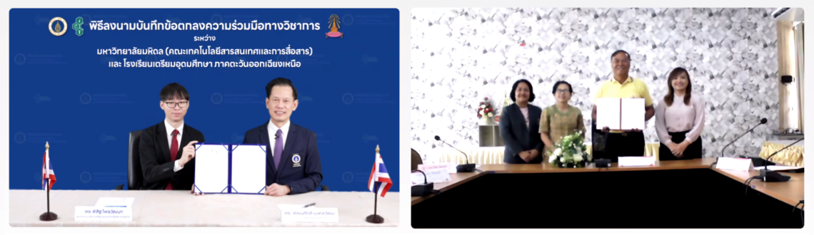 On this occasion, executives from both parties were present as witnesses. Representing ICT Mahidol was Dr. Pisit Praiwattana, Assistant Dean for Organizational Communications and Media Technology. Representing Triam Udom Suksa School of the Northeast were Mr. Phaiboon Surarak, Deputy Director; Miss Kiriya Thippamat, Senior Professional Level Teacher, as well as other teachers.