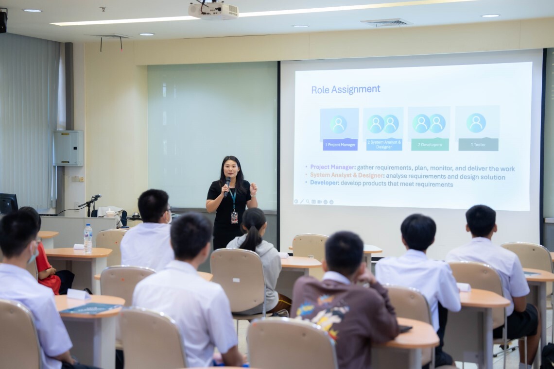 On June 18, 2025, the Faculty of Information and Communication Technology, Mahidol University (ICT Mahidol), organized the 2025 ICT Mahidol Short Course, themed “The Making of Software!” The session was honored to have Lect. Dr. Pattaraporn Sangaroonsilp, a lecturer from the Computer Science Academic Group and a member of the Software Engineering and Business Analytics Research Clusters (SEBA) , as the speaker. She shared her knowledge on the software development process with over 30 high school students. The session was also supported by Asst. Prof. Dr. Srisupa Palakvangsa Na Ayudhya, an instructor in the Computer Science Academic Group and a member of the Software Engineering and Business Analytics Research Clusters (SEBA), and Mr. Setnipat Kriangsakdachai, an alumnus of the Master of Science Program in Computer Science, who both served as assistant instructors. The event was held at Room IT405 – IT406, 4th Floor, ICT Building, Mahidol University, Salaya Campus.