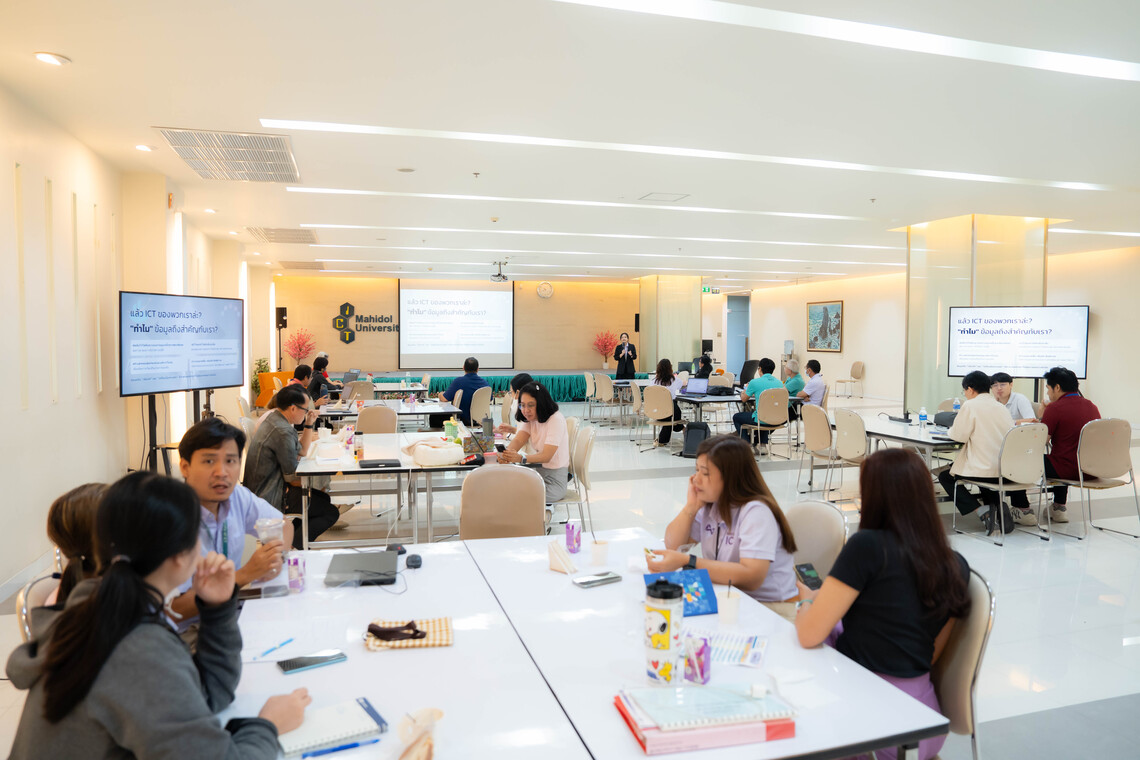 On May 27, 2025, the Faculty of Information and Communication Technology, Mahidol University (ICT Mahidol), organized the 2nd Mini R2R 2025 under the topic of “ICT Master 2025 (R2R + Data Innovation + AI).” The event was attended by support staff from 15 divisions within ICT Mahidol at the Grand Auditorium, 4th Floor, ICT Building, Salaya Campus.