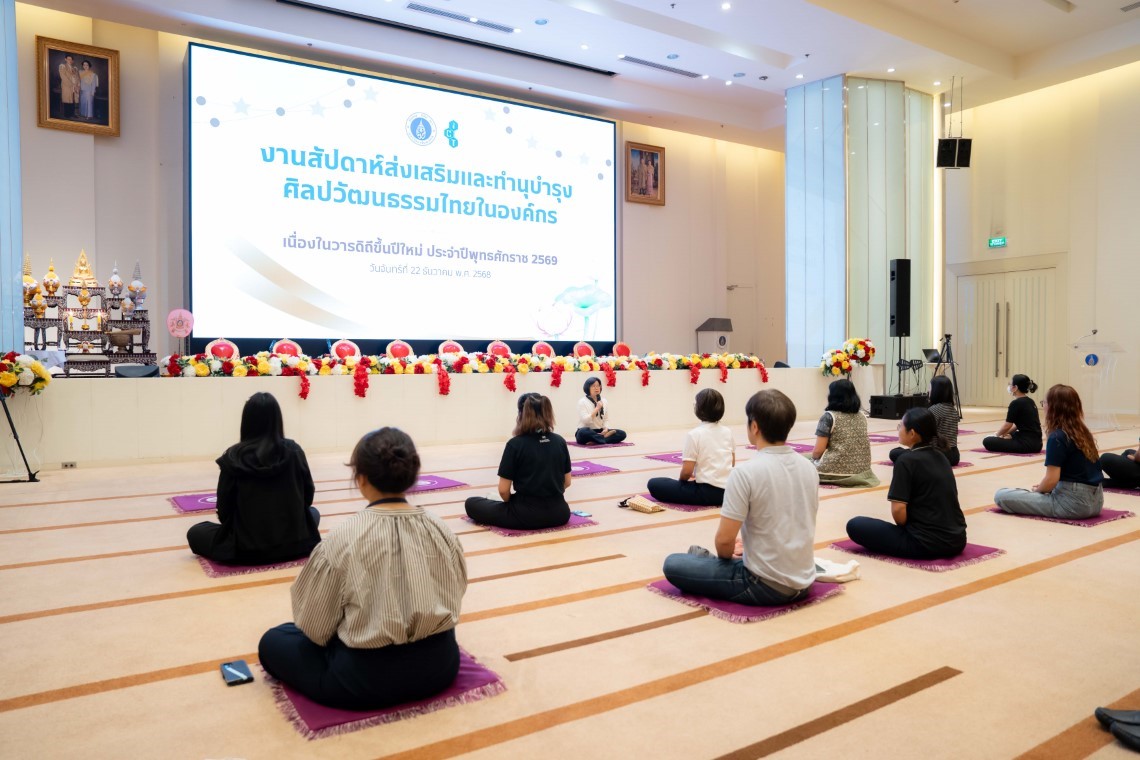 Upon the conclusion of the monastic ceremony, the Happiness – Enhancing Team encouraged faculty and staff members to participate in a meditation session. The total number of minutes meditated by each participant was calculated and converted into a monetary donation to a children’s foundation as part of the merit-making activities. In addition, the program featured a shared meal, a New Year prize draw, and interactive activities designed to foster happiness, unity, and engagement among faculty and staff members.