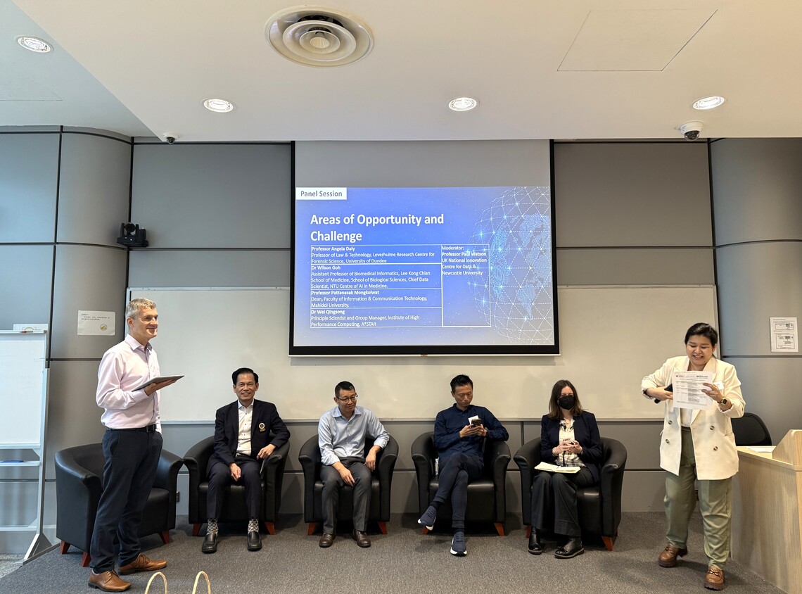 On November 13, 2024, Dr. Pattanasak Mongkolwat, Dean of the Faculty of Information and Communication Technology, Mahidol University (ICT Mahidol), represented the President of Mahidol University at the academic conference on Artificial Intelligence (AI) and healthcare systems titled “Dialogue on Digital Trust in AI for Healthcare.” He also participated in a panel discussion on the topic “Areas of Opportunity and Challenge,” alongside faculty members from various universities at the Digital Trust Center, Nanyang Technological University, Republic of Singapore.