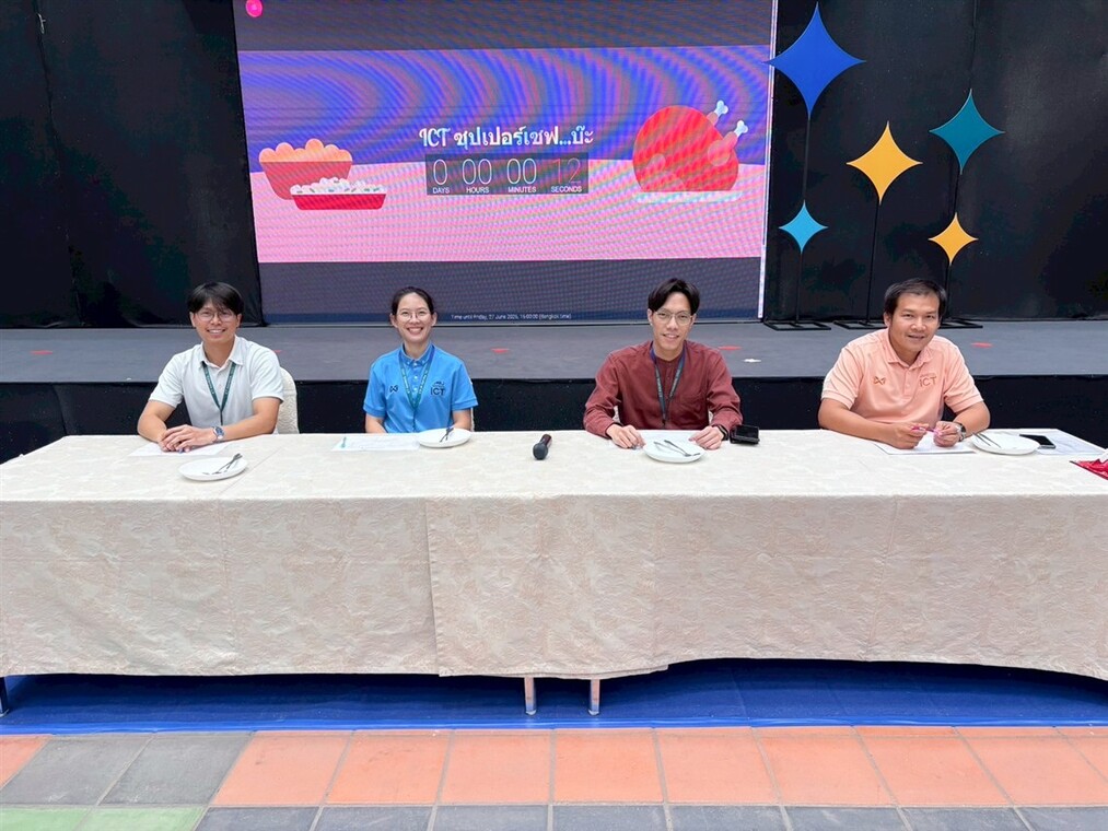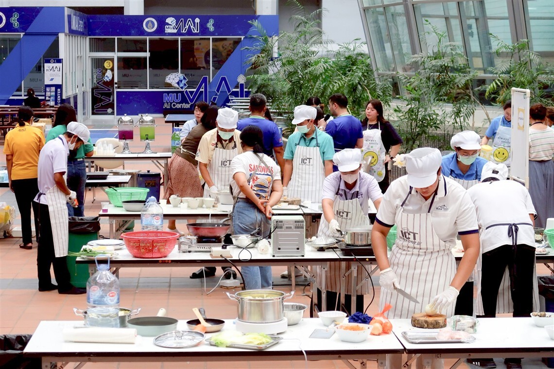 On June 27, 2025, Dr. Petch Sajjacholapunt, Deputy Dean for Administration and Human Resource and Head of the Happiness-Enhancing Team at the Faculty of Information and Communication Technology, Mahidol University (ICT Mahidol), led the team in organizing a cooking competition titled “ICT Super Chef”. The activity featured a friendly cooking competition in which staff members of ICT Mahidol demonstrated their culinary skills by preparing original dishes using four secret ingredients, showcasing their creativity, and cooking talents. On this occasion, Dr. Pawitra Liamruk, Deputy Dean for Organizational Development and Special Affairs, delivered a welcome remark to all participants at the Innovative Space, 1st Floor, ICT Building, Mahidol University, Salaya Campus.