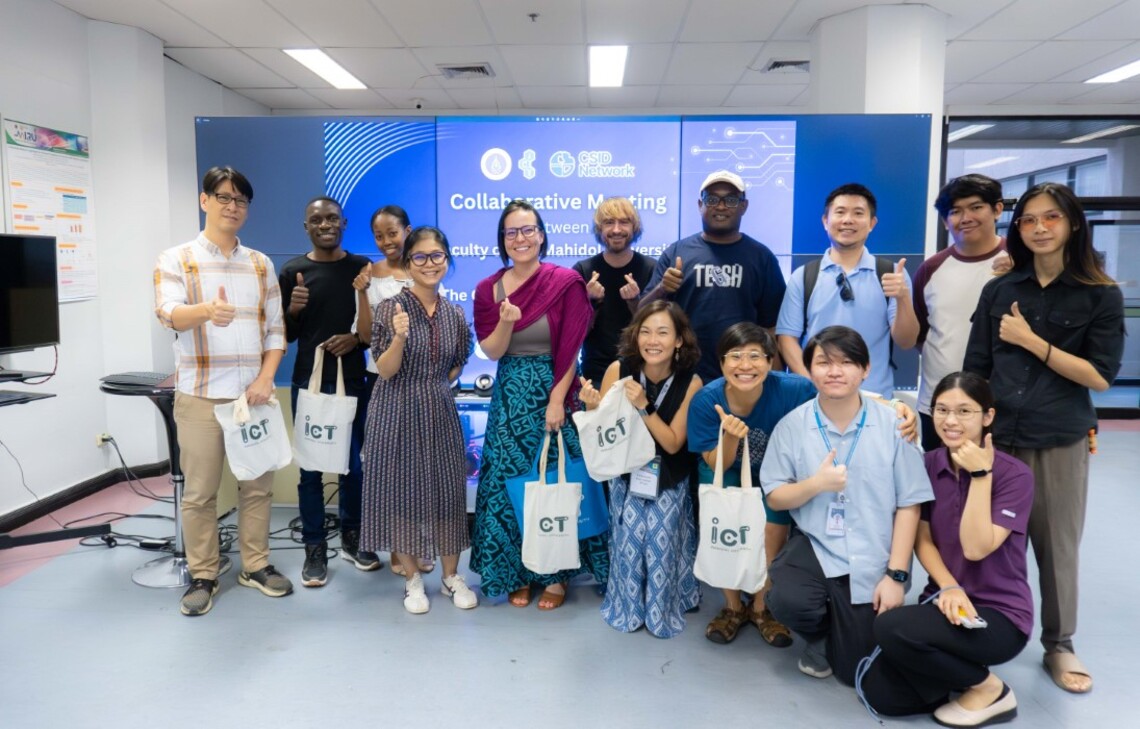On July 25, 2025, Dr. Myat Su Yin, Senior Researcher at the Faculty of Information and Communication Technology, Mahidol University (ICT Mahidol), together with a team of students, warmly welcomed Dr. Angela Okune, Managing Director, along with members of the Climate Sensitive Infectious Disease (CSID) Network, on the occasion of their visit to the faculty for a meeting to explore potential research collaboration. The meeting took place at the Mahidol-Bremen Medical Informatics Research Unit (MIRU Lab), 2nd Floor, ICT Building, Mahidol University, Salaya Campus. In this regard, Professor Dr. Peter Haddawy, Global Talent Professor at the Faculty of ICT, also welcomed the delegation and delivered a virtual welcome address via video conference.