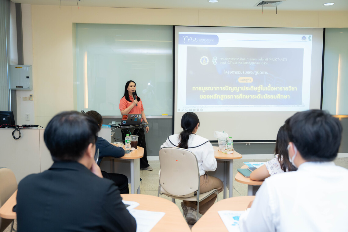 On May 28, 2025, the Faculty of Information and Communication Technology, Mahidol University (ICT Mahidol), organized a workshop titled “AI Integration in Secondary Education Curriculum Development.” The session was honored by the presence of Asst. Prof. Dr. Thanwadee Sunetnanta, an instructor in the Computer Science Academic Group and member of the Software Engineering and Business Analytics Research Clusters (SEBA), together with Asst. Prof. Dr. Ananta Srisuphab, Asst. Prof. Dr. Piyanuch Silapachote, and Asst. Prof. Dr. Preecha Tangworakitthaworn, instructors in the Computer Science Academic Group, who served as guest speakers to share their expertise on effectively integrating Artificial Intelligence (AI) into learning objectives of the secondary education curriculum. The workshop was attended by a teachers and educational staff at Room IT405, 4th Floor, ICT Building, Mahidol University, Salaya Campus.