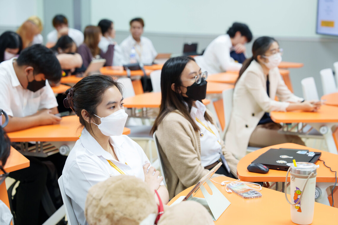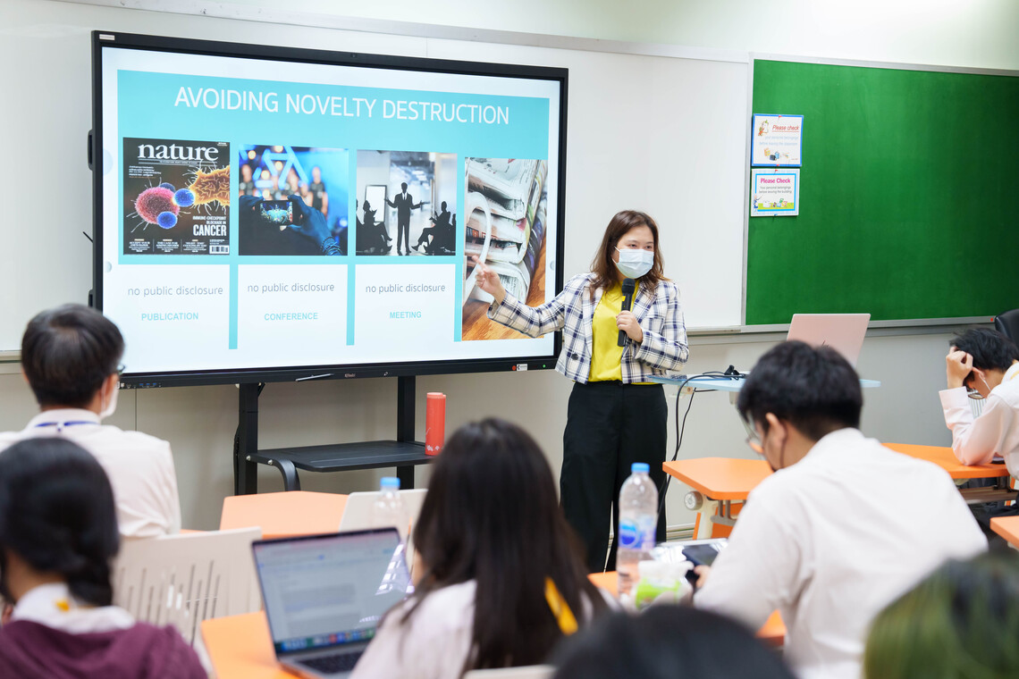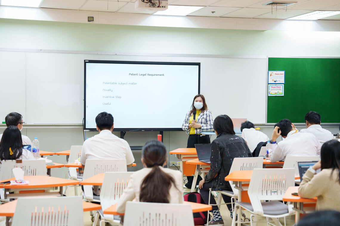 On this occasion, Mr. Pichet Thanapongjongruay, Head of Technology Commercialization Unit, as well as Ms. Ploypann Chitchaeng, Intellectual Property Officer at the Institute for Technology and Innovation Management (iNT) were the guest speakers who shared knowledge about intellectual property with all students.