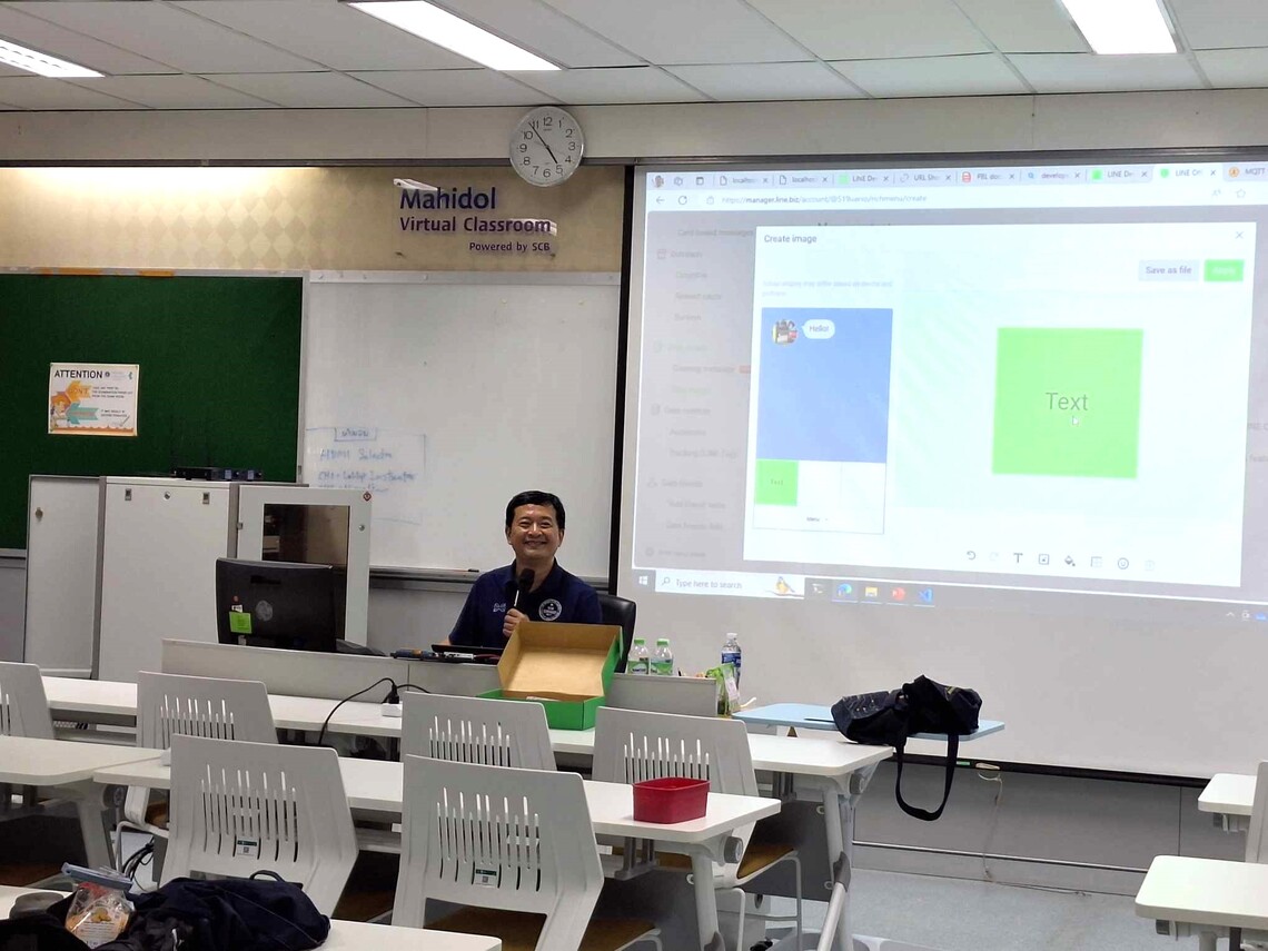 On this occasion, Asst. Prof. Dr. Supachai Vorapojpisut, Instructor of Electrical and Computer Engineering Department, the Faculty of Engineering, Thammasat University, served as the speaker. Throughout the session, he shared his knowledge on Full-Stack IoT technology utilizing MSVCode, PlatformIO, Container, MQTT, REST API, MongoDB, and LINE Bot with all the students.