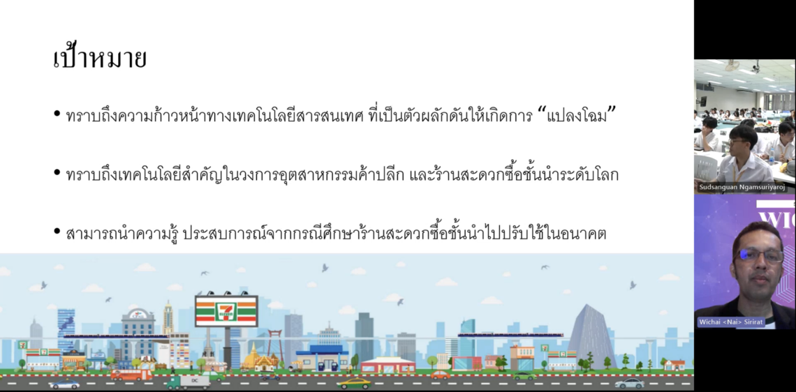 On February 12, 2024 – the Faculty of Information and Communication Technology, Mahidol University (ICT Mahidol), led by Asst. Prof. Dr. Thitinan Tantidham, and Dr. Chaiyong Ragkhitwetsagul, instructors of the course, ITDS101 Industry Problems and Experiences 1, organized a special talk on “Technology and Convenient Store, 7Eleven” for the 1st year students of B.Sc. in Digital Science and Technology (DST Thai Program) via Microsoft Teams. On this occasion, Mr. Wichai Sirirat, Assistant Chief Security Officer (Cyber Security Management Office), Gosoft (Thailand) Co., Ltd., was the keynote speaker. During the talk, he shared his knowledge and experiences on the use of technology in the management of 7Eleven convenience stores.