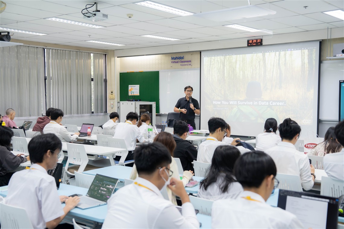 On January 26, 2026, the Faculty of Information and Communication Technology, Mahidol University (ICT Mahidol), led by Asst. Prof. Dr. Chaiyong Ragkhitwetsagul—an instructor in the Computer Science Academic Group and the Software Engineering and Business Analytics Research Cluster (SEBA), and the course instructor for ITDS101: Industry Problems and Experiences 1—organized a special lecture on “Data Science” for first-year students in the Bachelor of Science Program in Digital Science and Technology (DST Thai Program). The lecture featured Mr. Kan Ouivirach, Data Product Developer and Technical Coach at Odd-e (Thailand) Co., Ltd., as the guest speaker. He shared his expertise in data science with the students in Room IT204, 2nd floor, ICT Building, Mahidol University, Salaya Campus.