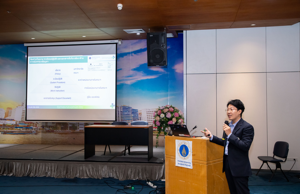 On February 5 and 9, 2024 – the Faculty of Information and Communication Technology, Mahidol University (ICT Mahidol), led by Assoc. Prof. Dr. Sudsanguan Ngamsuriyaroj, Advisor to the Dean, and Dr. Tipajin Thaipisutikul, Assistant Dean for Academic Services and Technology Transfer, who are instructors of the course ITDS201 Industry Problems and Experiences 2, led the 2nd year students of B.Sc. in Digital Science and Technology (DST Thai Program), in a study visit at Siriraj Informatics and Data Innovation Center (SiData+), the Faculty of Medicine Siriraj Hospital, Mahidol University.