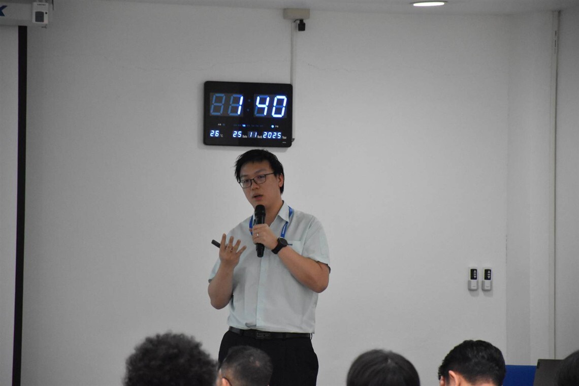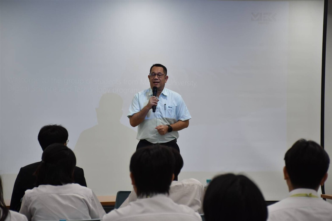 On November 25, 2025, the Faculty of Information and Communication Technology, Mahidol University (ICT Mahidol), led by Asst. Prof. Dr. Dolvara Guna-Tilaka, an instructor of the course ITDS331 Embedded and Cyber-Physical Systems, together with Dr. Kanthanet Tharot, an instructor of the Computer Science Academic Group, took the 3rd students from the Bachelor of Science in Digital Science and Technology (DST Thai Program) on a study visit to Mektec Manufacturing Corporation (Thailand) Co., Ltd. On this occasion, the ICT Mahidol delegation was warmly welcomed by Mr. Apirat Polyeam, Deputy General Manager of Mektech Manufacturing Corporation (Thailand) Co., Ltd., who graciously led a company tour and provided an informative overview of the IT operations across various departments. The event was concluded by Mr. Peeraphon Neamnoppanate, Division Manager, at Mektec Manufacturing Corporation (Thailand) Co., Ltd.