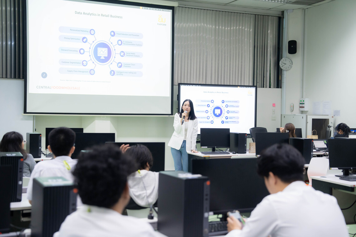 On October 22, 2024, the Faculty of Information and Communication Technology, Mahidol University (ICT Mahidol), led by Dr. Siripen Pongpaichet, Assistant Dean for Information and Systems and instructor of the course, ITDS341 Fundamentals of Data Science, organized a special talk on the topic of “Data Science.” On this occasion, Ms. Niorn Suchonwanich , Data Technology and Analytics Lead from Yim Platform, Central Food Retail, served as the speaker. She shared fundamental knowledge of Data Science and various data management processes with third-year students of the Bachelor of Science in Digital Science and Technology (DST Thai Program). The session took place in the Computer Lab IT103, 1st floor, Faculty of ICT, Mahidol University, Salaya.