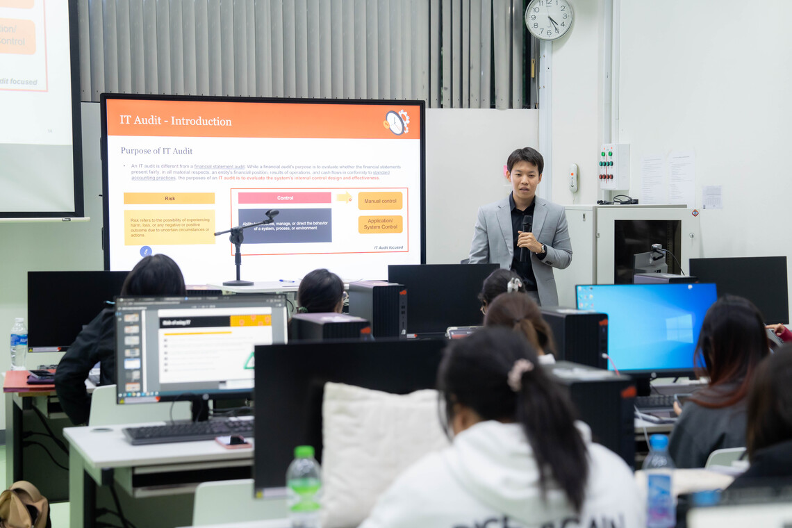 On January 14, 2025, the Faculty of Information and Communication Technology, Mahidol University (ICT Mahidol), led by Dr. Assadarat Khurat, Assistant Dean for Risk Management and Cybersecurity and instructor of the ITDS355 IT Auditing course, organized a special talk on the topic “IT Audit in Practice.” The event was held for third-year students in the B.Sc. in Digital Science and Technology (DST Thai Program) at Computer Laboratory IT103, 1st floor, ICT Building, Salaya.