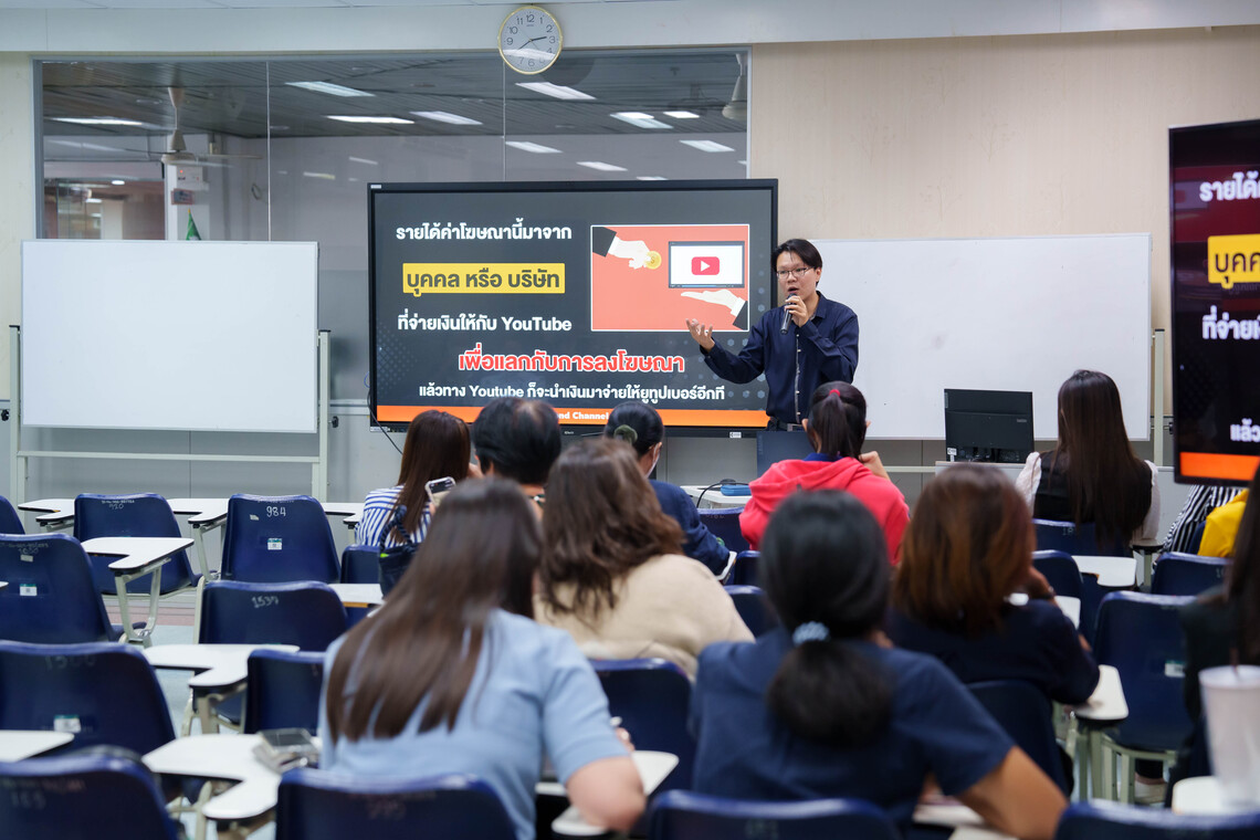 On August 16, 2024, the Faculty of Information and Communication Technology, Mahidol University (ICT Mahidol), in collaboration with Edupluz, organized a seminar titled “MUICT-AST The Series for Mahidol People: Earning Income from YouTube Using a Mobile Phone.” On this occasion, Lect. Tawatchai Sukhum, author of the book “Becoming a Millionaire YouTuber with Just a Mobile Phone,” shared his expertise on using the YouTube platform via mobile devices to generate income. The seminar was attended by faculty members, staff, students from Mahidol University, and other interested participants in Room IT210, 2nd Floor, Faculty of ICT, Mahidol University, Salaya.