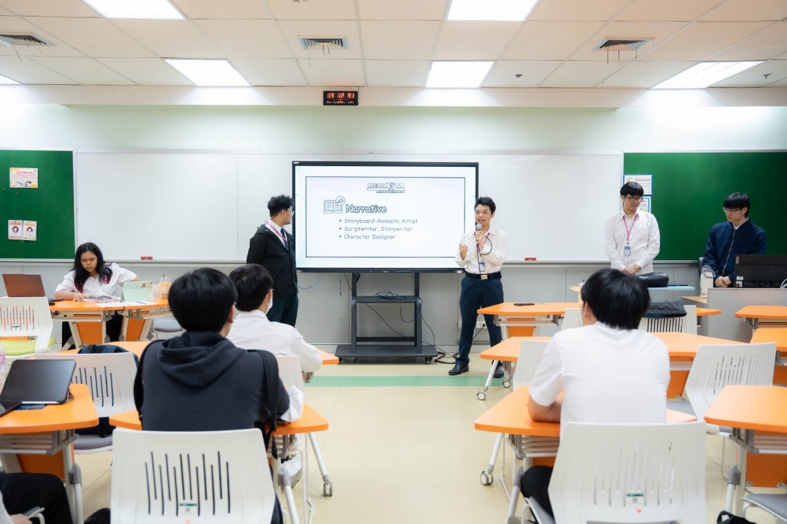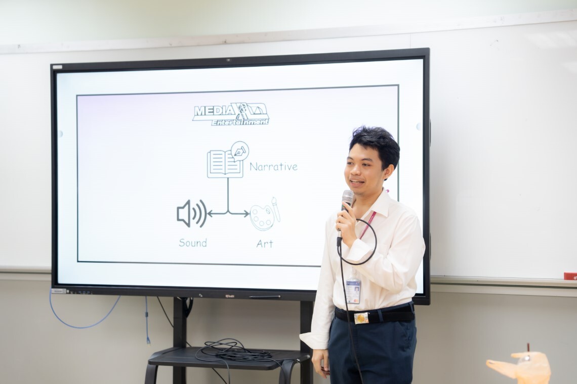 On January 21, 2026, the Faculty of Information and Communication Technology, Mahidol University (ICT Mahidol), in collaboration with the Media and Entertainment Club, organized a student activity titled “Media and Entertainment Club Introduction,” led by second-year students in the Bachelor of Science Program in Information and Communication Technology (ICT International Program). The opening remarks were delivered by Mr. Piyapong Pongruang, President of the Media and Entertainment Club. The activity was facilitated by the club members, including Mr. Thakorn Jullobol, Club Secretary, Mr. Atigun Kerdbourpatch, Club Treasurer, as well as Mr. Radhabhumi Pangkanont and Mr. Dechatorn Siladee, club members.