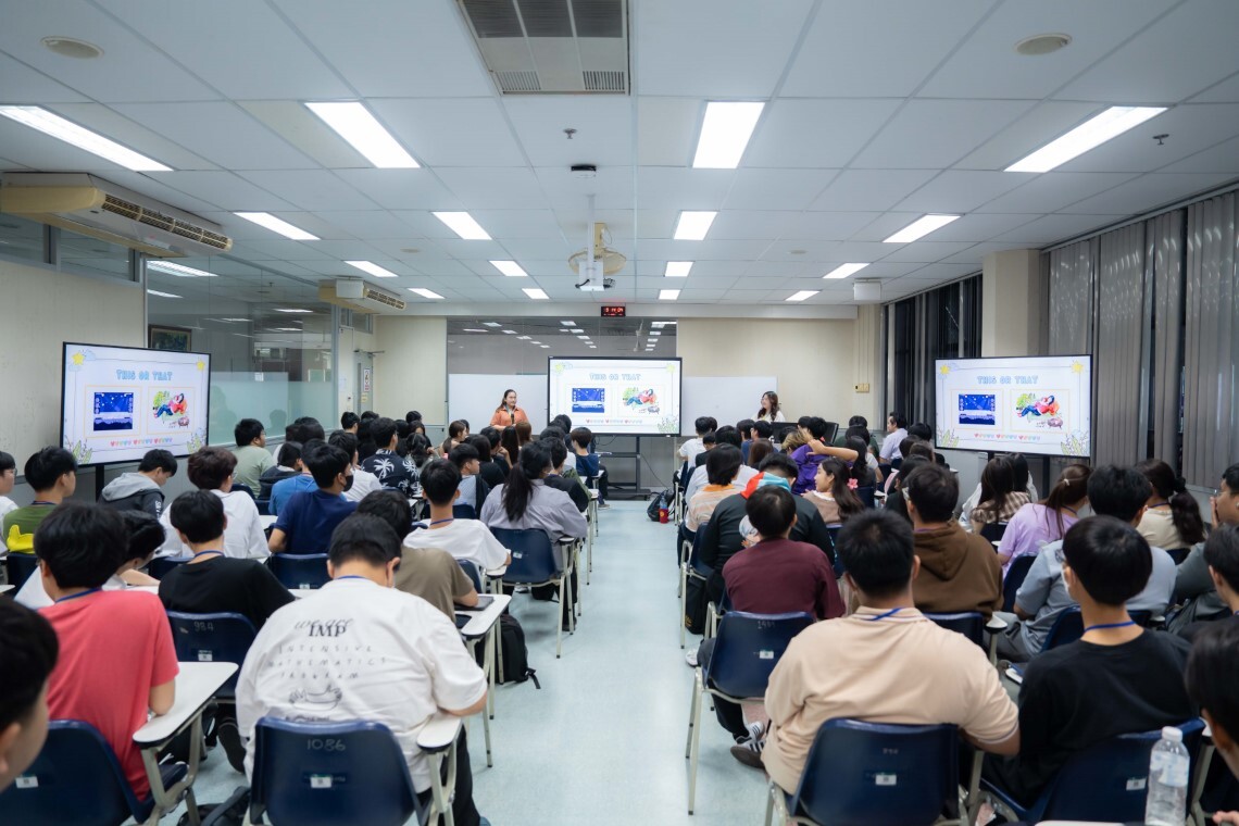 On July 4, 2025, the Faculty of Information and Communication Technology, Mahidol University (ICT Mahidol), organized the “Mental Health Awareness Session” for over 300 first-year students from the Bachelor in Science in Information and Communication Technology (ICT International Program), and the Bachelor of Science in Digital Science and Technology (DST Thai Program). The session was honored by the presence of Ms. Chisanucha Lertpattanakultorn, and Ms. Chanisa Vutthichotvarakit, counseling psychologists at ICT Mahidol, who served as guest speakers. They shared valuable knowledge and conducted workshops focused on mental health check-ups through engaging activities, including “This or That Pairing Game”, “Mental Health Check-In (DASS)”, “Psycho DASS: Basic Guidance on how to Cope with Depression, Panic Attacks, and Anxiety”, and “Psycho Self-care / Self-compassion: The Benefits of Rest and Writing Positive Affirmations to Oneself.” The activity was held in Room IT204, ICT Building, Mahidol University, Salaya Campus.