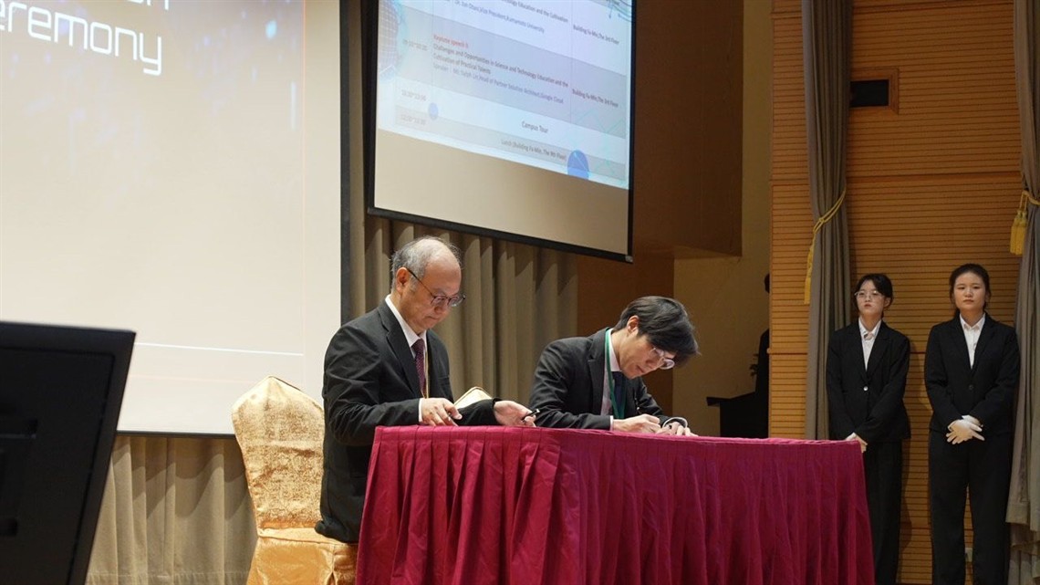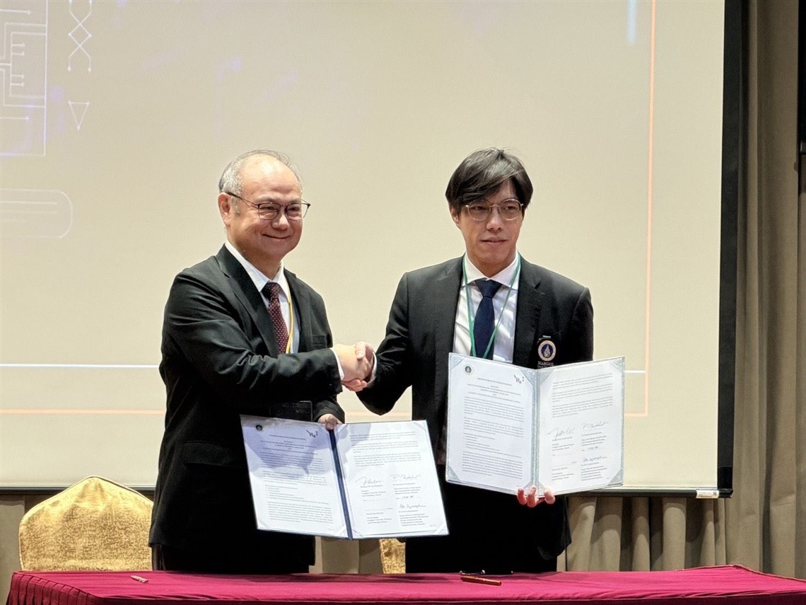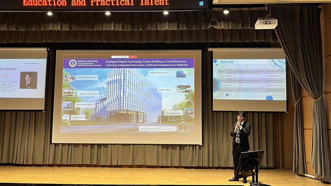 On December 18, 2025, Dr. Petch Sajjacholapunt, Deputy Dean for Administration and Human Resource, Faculty of Information and Communication Technology, Mahidol University (ICT Mahidol), as the Dean’s representative, signed a Memorandum of Understanding (MoU) with Prof. Dr. Tzu-Hsiang Ko, President of Lunghwa University of Science and Technology. The signing ceremony was witnessed by executives and staff of Lunghwa University of Science and Technology on the occasion of the “2025 Science and Technology Education and Practical Talent Cultivation International Conference (2025 STEPT), Executive Forum,” held at Lunghwa University of Science and Technology, Republic of China (Taiwan).
