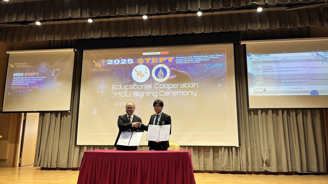 On December 18, 2025, Dr. Petch Sajjacholapunt, Deputy Dean for Administration and Human Resource, Faculty of Information and Communication Technology, Mahidol University (ICT Mahidol), as the Dean’s representative, signed a Memorandum of Understanding (MoU) with Prof. Dr. Tzu-Hsiang Ko, President of Lunghwa University of Science and Technology. The signing ceremony was witnessed by executives and staff of Lunghwa University of Science and Technology on the occasion of the “2025 Science and Technology Education and Practical Talent Cultivation International Conference (2025 STEPT), Executive Forum,” held at Lunghwa University of Science and Technology, Republic of China (Taiwan).