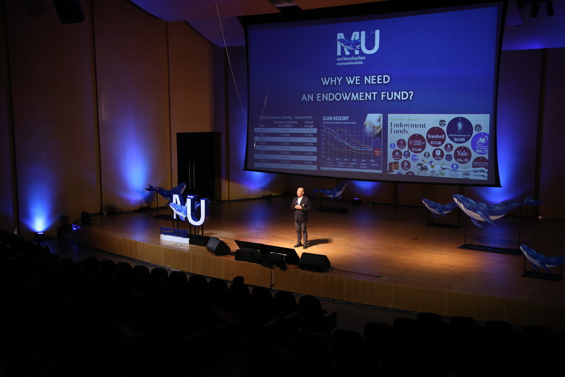 The goal of the “MU Endowment Kick-off Day” is to enhance awareness and comprehension of the Mahidol University Endowment Fund among university executives, instructors, and staff. This fund serves as the university’s central financial resource designed to advance the vision of “creation.” It actively contributes to the generation of new knowledge and innovations, playing a crucial role in fostering lifelong learning for individuals. Furthermore, it aspires to cultivate the “Wisdom of the Land,” making a positive impact on society and ultimately elevating the well-being of individuals in the community, country, and globally. Moreover, the endowment is committed to supporting and promoting educational development, learning resources, research projects, and diverse innovations at Mahidol University.