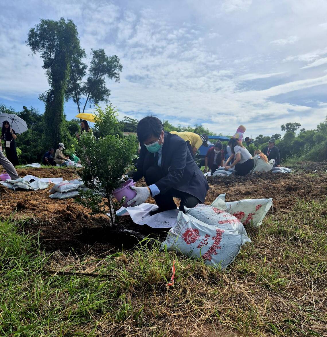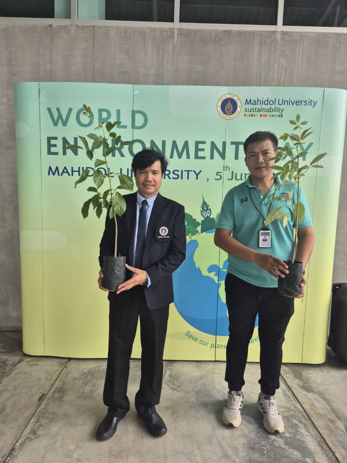 Together, they planted 74 trees, including Rain Trees, Pink Trumpet Trees, Sathorn Trees, Butterfly Trees, Black Ebony, etc. This event, symbolizing “World Environment Day,” observed annually on June 5, was held at the Establishment of Mahidol University Bio-industrial Development Center, Salaya campus.
