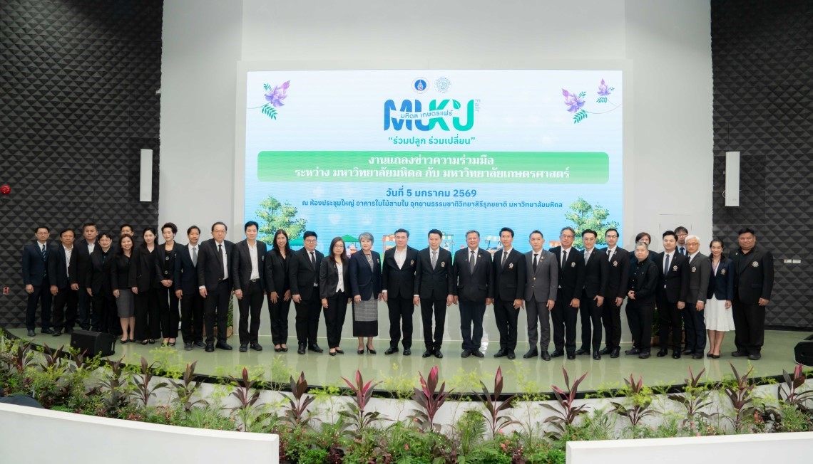 “Mahidol – Kaset Fair 2026,” held under the theme “Grow Together, Change Together,” is a collaborative initiative between Mahidol University and Kasetsart University to “plant” knowledge, “cultivate” good health, and “transform” toward a sustainable society. The fair is scheduled to take place from January 14 to 18, 2026, at Mahidol University, Salaya Campus. The event will showcase knowledge, innovations, and products related to safe agriculture and sustainable health through a wide range of activities, including health services, eco-friendly exhibitions, safe agricultural products, health-focused fruits and vegetables, nature-based workshops for physical and mental well-being, and inspirational activities for all ages.