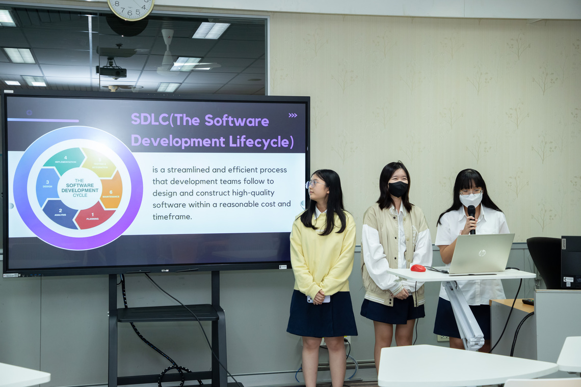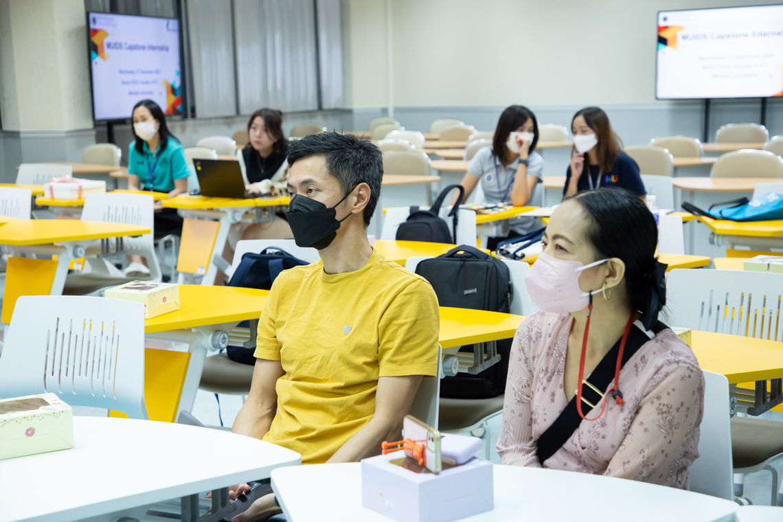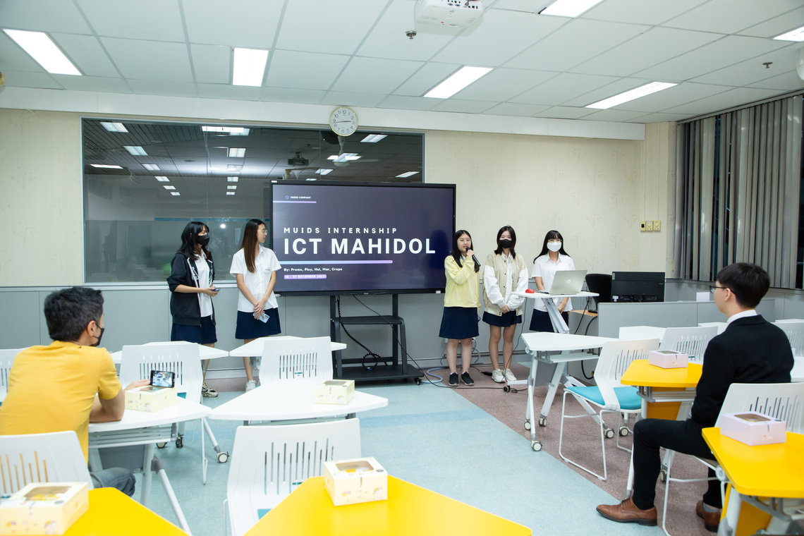 On December 27, 2023, the Faculty of Information and Communication Technology, Mahidol University (ICT Mahidol), held an event to review the learning outcomes of the software engineering related internship project for the 11th-year high school students of the Mahidol University International Demonstration School (MUIDS). On this occasion, Dr. Pisit Praiwattana, Assistant Dean for Organizational Communications and Media Technology, warmly welcomed Mr. Matthew Allsopp, English teacher & Curriculum Coordinator, and parents from the MUIDS in Room IT210, the Faculty of ICT, Mahidol University, Salaya.
