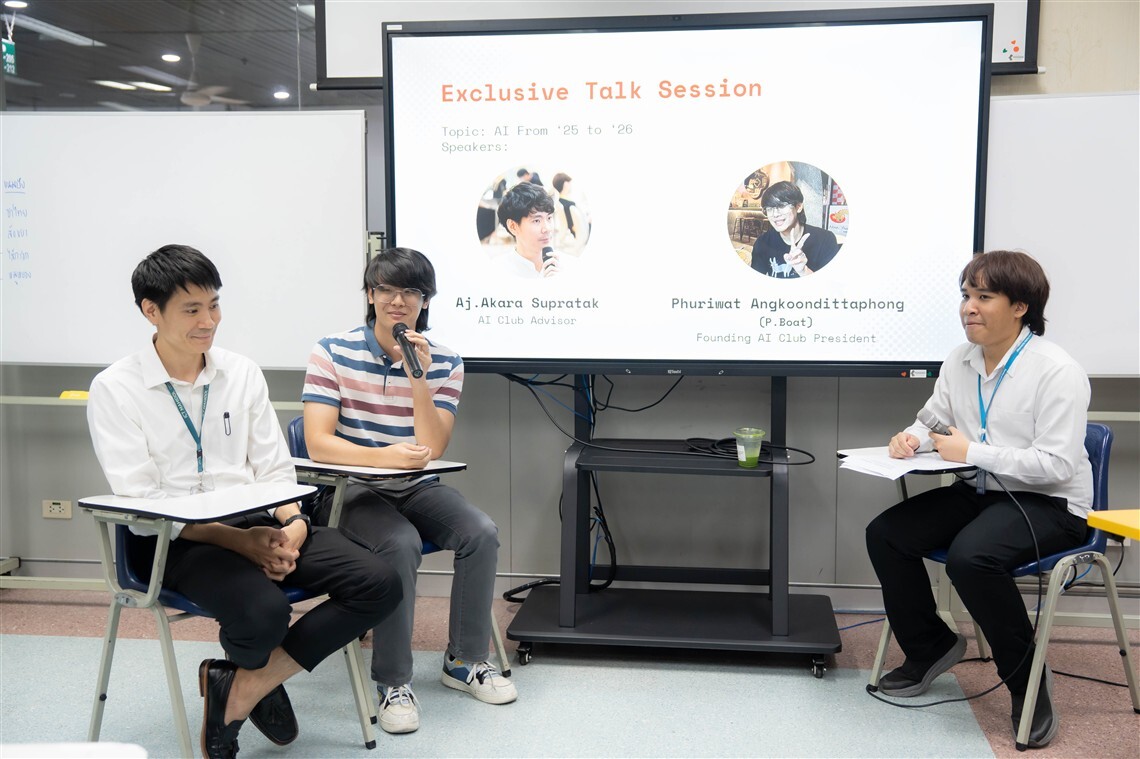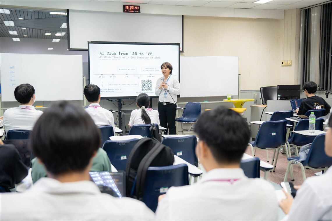 On January 20, 2026, the Faculty of Information and Communication Technology, Mahidol University (ICT Mahidol), in collaboration with the AI Club, organized the “New Year, New Members Activity and Mini Workshop” for first- to fourth-year students of the Bachelor of Science programs in Information and Communication Technology (ICT International Program) and Digital Science and Technology (DST Thai Program). The event was honored by Asst. Prof. Dr. Akara Supratak, a lecturer in the Computer Science Academic Group and the club advisor, together with Mr. Phuriwat Angkoondittaphong, former President of the AI Club and an ICT Mahidol alumnus (Batch 18), who delivered the opening remarks. The activities were facilitated by Mr. Eakbodin Kanjanamuengtong, a fourth-year student in the Bachelor of Science in Information and Communication Technology (ICT International Program) and the current President of the AI Club. The event took place at Room IT210, 2nd floor, Faculty of ICT, Mahidol University, Salaya Campus.
