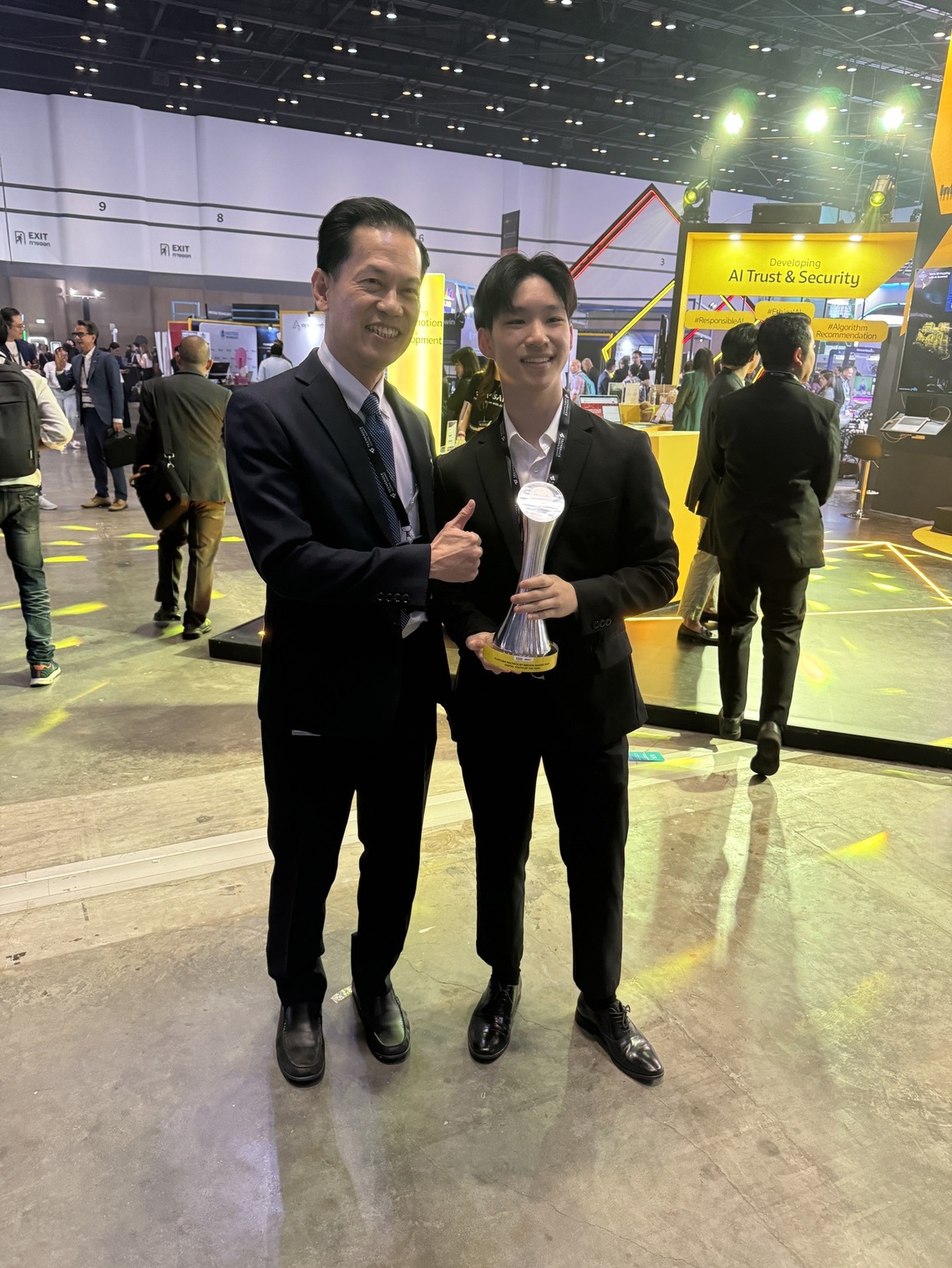 The Faculty of Information and Communication Technology, Mahidol University (ICT Mahidol), congratulates Mr. Pongpon Tangpigulthong, a third-year student in the B.Sc. in Information and Communication Technology (ICT International Program), and a member of the Mission Makers team, for winning the “Prime Minister’s Digital Awards 2023 in the Digital Youth of the Year Category” with their project, “Macheck,” a news filtering platform and browser extension. The award ceremony, organized by the Ministry of Digital Economy and Society in collaboration with the Digital Economy Promotion Agency (depa), took place at the “Techsauce Global Summit 2024,” held at the Queen Sirikit National Convention Center (QSNCC) on August 7, 2024. Mr. Prasert Chanthararuangthong, Minister of Digital Economy and Society, presented the award. On this occasion, Dr. Pattanasak Mongkolwat, the Dean of ICT Mahidol, personally congratulated and encouraged the award-winning students.