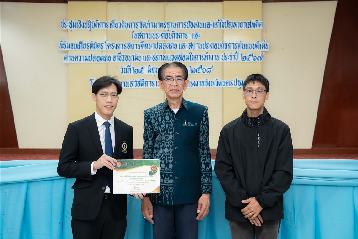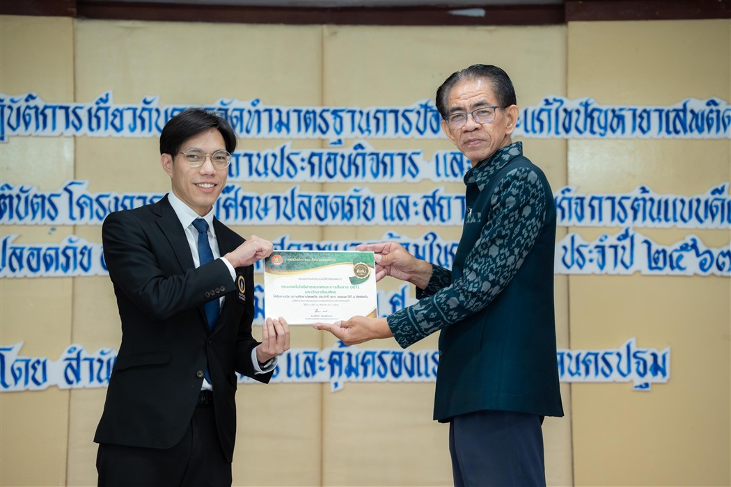 On June 25, 2025, Dr. Petch Sajjacholapunt, Deputy Dean for Administration and Human Resource of the Faculty of Information and Communication Technology, Mahidol University (ICT Mahidol), represented the Dean in receiving the “Outstanding Workplace Safety Award.” The certificate was presented by Mr. Thongchai Inthaphong, Provincial Labour Protection and Welfare Officer of Nakhon Pathom, at Kingdao Meeting Room, Whale Hotel, Nakhon Pathom.