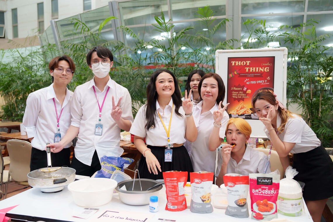 This event was held to provide an opportunity for students of the faculty to open their own gift shops and food stalls, along with enjoying music performances by fellow students and participating in various activities under the theme of welcoming the Songkran Festival at the Innovative Space of the Faculty of ICT, Mahidol University.