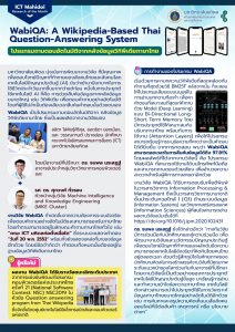 Mahidol University has made it a priority to conduct high-quality research to meet the needs of a rapidly changing world and respond to both Thailand’s and the world’s problems. Artificial Intelligence (AI) technology has become more prevalent in everyday life than ever. The AI technology is often used to facilitate the discovery of knowledge in large databases such as “Wikipedia”. The AI technology can assist in automatically retrieving answers to natural-language questions. With such capability, users no longer have to waste time searching for the answers on their own.