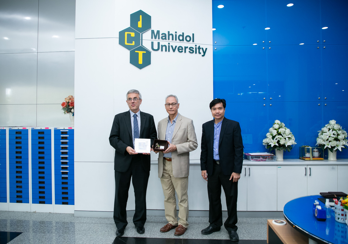 On November 8, 2023, Assoc. Prof. Dr. Vasaka Visoottiviseth (Program Chair of the M.Sc. in Cyber Security and Information Assurance), Assoc. Prof. Dr. Worapan Kusakunniran (Program Chair of the Ph.D. in Computer Science), and Dr. Assadarat Khurat, Assistant Dean for Risk Management and Cybersecurity, welcomed the delegate. They presented him with the overall information of ICT Mahidol’s postgraduate programs and research in various topics, including Cyber Security, IoT, Blockchain, etc. They also discussed the possibilities of a collaborative Ph.D. program. The discussion took place in Room A1.