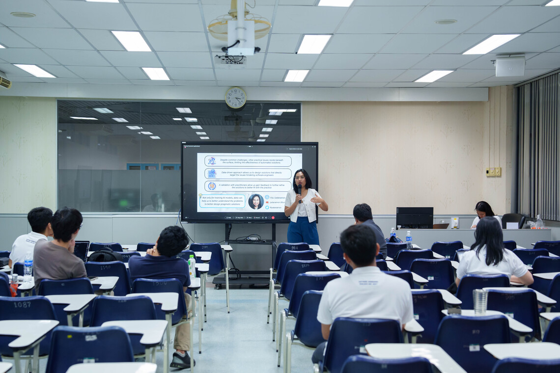 In the afternoon, a special lecture titled “Uncovering Hidden Challenges: Designing Data-Driven Solutions for Real-World Software Engineering” was delivered by Dr. Patanamon Thongtanunam. The lecture focused on effective problem-solving in software engineering practices such as Agile Planning, Code Reviews, and Code Integration. Faculty members and students of Mahidol University attended this session in Room IT210, both in person and online via Webex Meetings.