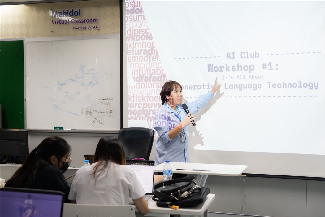 On January 27, 2026, the AI Club of the Faculty of Information and Communication Technology, Mahidol University (ICT Mahidol), organized “Workshop #1: Natural Language Processing (NLP) and Introduction to Large Language Models (LLMs).” The workshop was conducted by Mr. Eakbodin Kanjanamuengtong, a fourth-year student in the Bachelor of Science Program in Information and Communication Technology (ICT International Program) and President of the AI Club, together with Mr. Phusit Mongkhonwatcharaphun, a fourth-year student in the same program and Vice President of the AI Club. The speakers provided an overview of the roles, fundamental concepts, and significance of Natural Language Processing (NLP) and Large Language Models (LLMs) through a hands-on workshop. The activity was attended by first- to fourth-year students from the Bachelor of Science Program in Information and Communication Technology (ICT International Program) and the Bachelor of Science Program in Digital Science and Technology (DST Thai Program) in Room IT204, 2nd floor, ICT Building, Mahidol University, Salaya Campus.