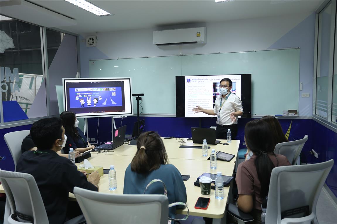 On 1 December 2022 – the Faculty of Information and Communication Technology, Mahidol University (ICT Mahidol), led by Assoc. Prof. Dr. Worapan Kusakunniran, Instructor and Head of Machine Vision and Information Transfer Lab (MVIT), together with Asst. Prof. Dr. Charnyote Pluempitiwiriyawej, Instructor, Miss Punyanuch Borwarnginn, Ph.D. student of Computer Science Program, as well as Mr. Kittikhun Thongkanchorn, Computer Technical Officer (Senior Professional Level), Technology Infrastructure Division, welcomed executive and staff from Sirindhorn School of Prosthetics and Orthotics, Faculty of Medicine Siriraj Hospital, led by Dr. Manunchaya Samala, the Deputy Director during their visit to the Machine Vision and Information Transfer Lab (MVIT), ICT Building, Salaya Campus.