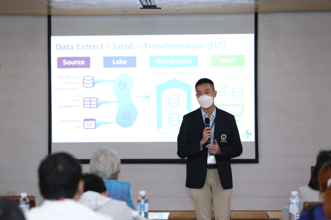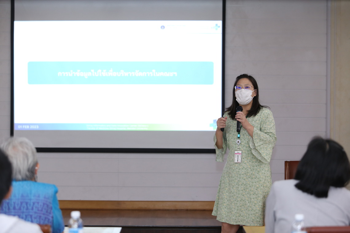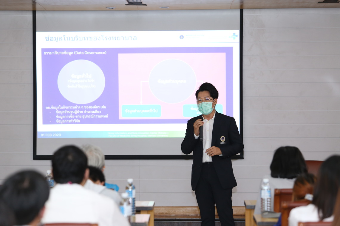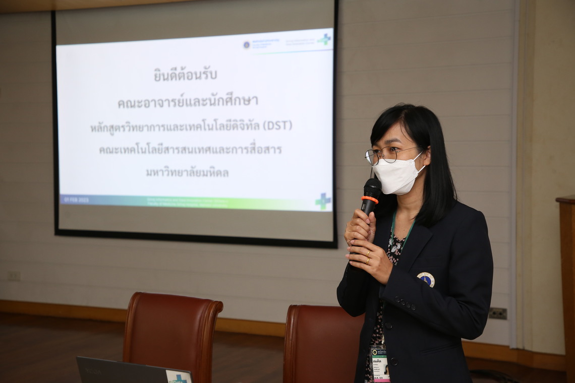 On 1 February 2023 – the Faculty of Information and Communication Technology, Mahidol University (ICT Mahidol), led by Assoc. Prof. Dr. Sudsanguan Ngamsuriyaroj, instructor of the course, ITDS201 Industry Problems and Experiences 2, together with Lect. Pagaporn Pengsart, Deputy Dean for Infrastructure and Technology, Dr. Siripen Pongpaichet, Assistant Dean for Information and Systems, Asst. Prof. Dr. Thitinan Tantidham, and ICT Mahidol staff, led the 2nd year students of B.Sc. in Digital Science and Technology (DST Thai Program), in a study visit at Siriraj Informatics and Data Innovation Center (SiData+), Faculty of Medicine Siriraj Hospital, Mahidol University. On this occasion, Ms. Somkid Khamsrimuang, Deputy Director and team welcomed ICT Mahidol instructors and students, and then presented the information of the Siriraj Informatics and Data Innovation Center to them.