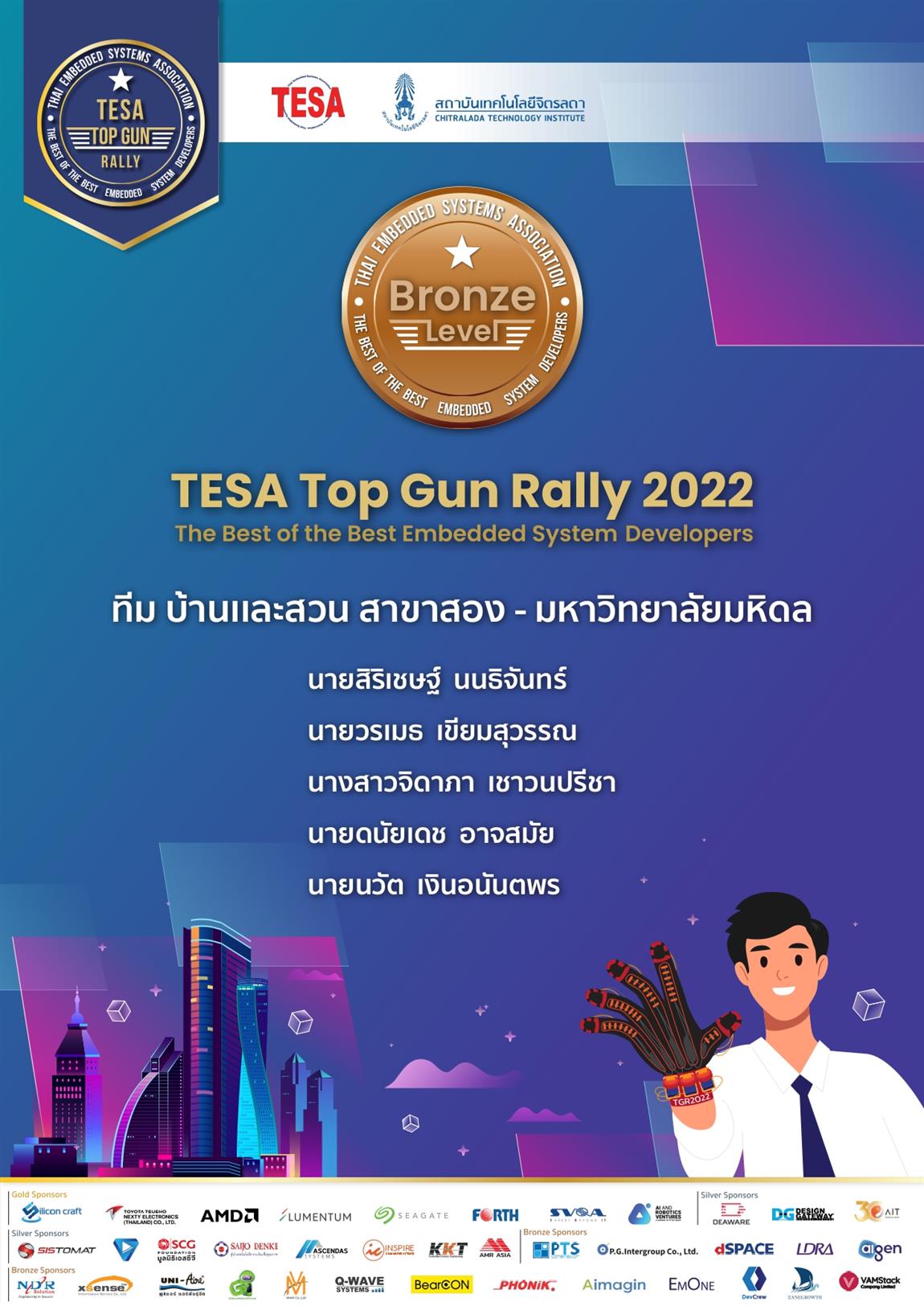 The Faculty of Information and Communication Technology, Mahidol University (ICT Mahidol) would like to express its congratulations to “Team Baan and Suan” on receiving Silver Level, and “Team Baan and Suan #2” on receiving Bronze Level from “The Best of The Best Embedded System Developers (TESA Top Gun Rally 2022)”. The competition, under the topic “Device Development for Metaverse” was organized by Thai Embedded Systems Association, together with the Faculty of Digital Technology, Chitralada Technology Institute, as well as industrial network, during 5 – 10 September 2022, at Chitralada Technology Institute, Bangkok.