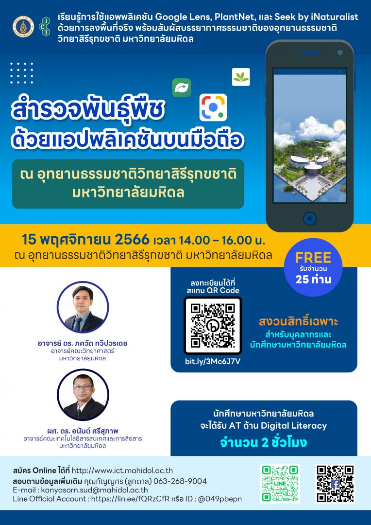 สำรวจพันธุ์พืชด้วยแอปพลิเคชันบนมือถือ ณ อุทยานธรรมชาติวิทยาสิรีรุกขชาติ มหาวิทยาลัยมหิดล