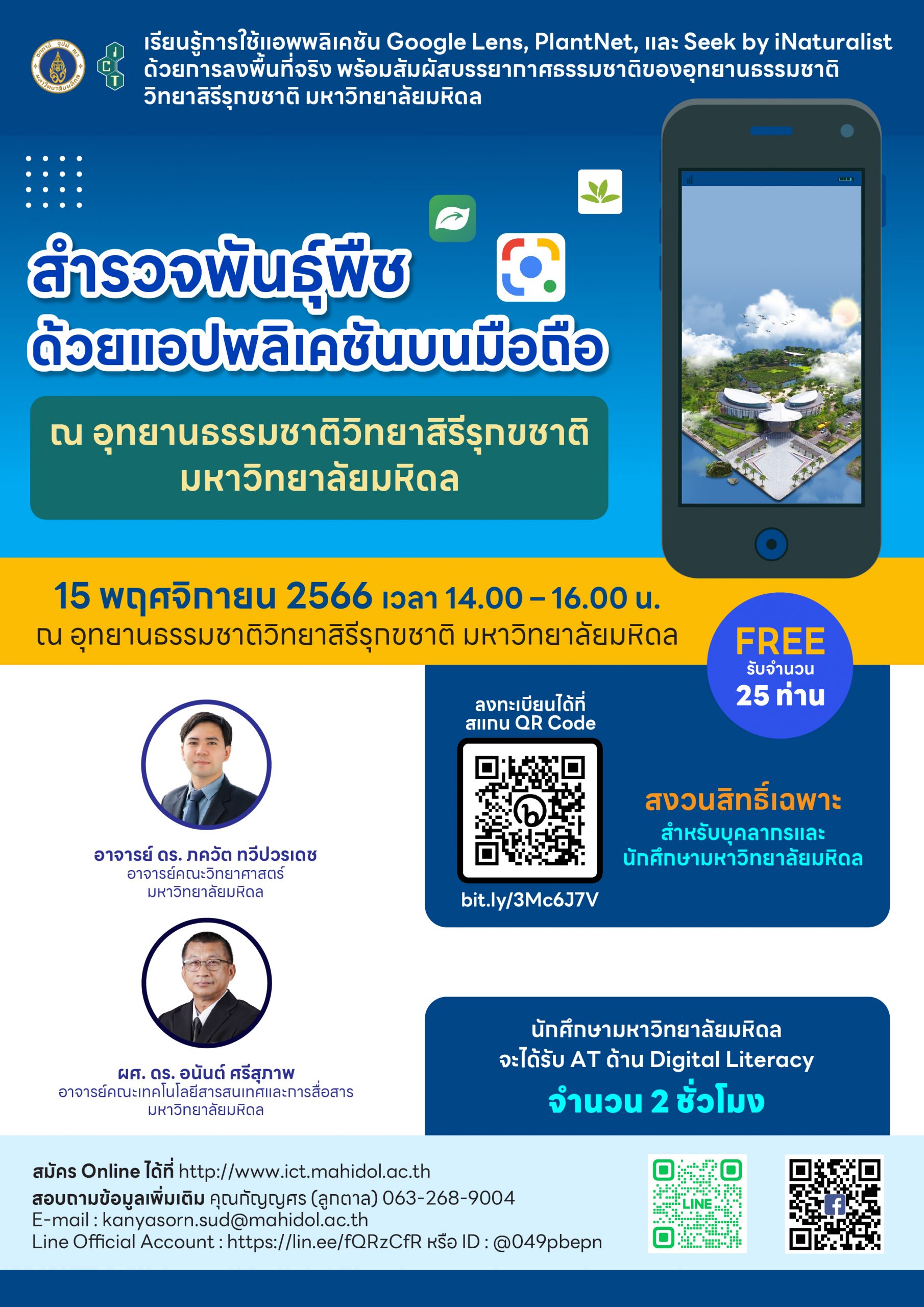 /  สำรวจพันธุ์พืชด้วยแอปพลิเคชันบนมือถือ ณ อุทยานธรรมชาติวิทยาสิรีรุกขชาติ มหาวิทยาลัยมหิดล