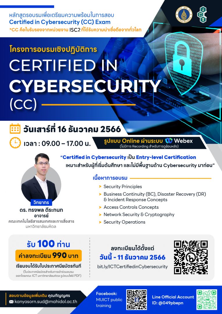โครงการอบรมเชิงปฏิบัติการ “Certified in Cybersecurity (CC)”
