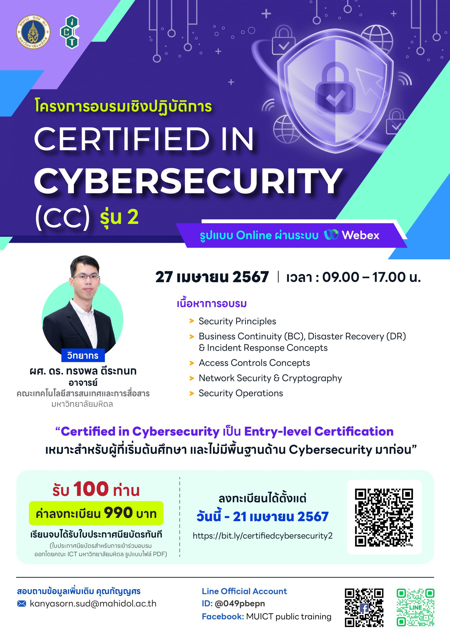 โครงการอบรมเชิงปฏิบัติการ “Certified in Cybersecurity (CC) รุ่น 2”