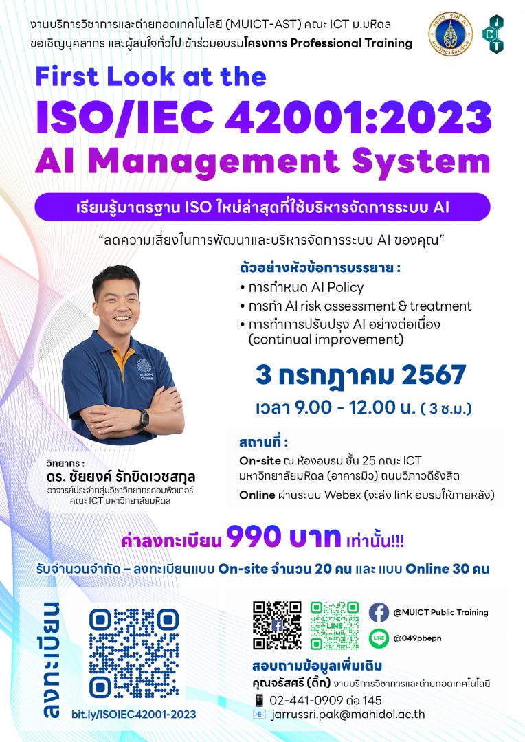 First Look at the ISO/IEC 42001:2023 AI Management system: เรียนรู้มาตรฐาน ISO ใหม่ล่าสุดที่ใช้บริหารจัดการระบบ AI “ลดความเสี่ยง เพิ่มความปลอดภัยในการพัฒนาและใช้ระบบ AI”