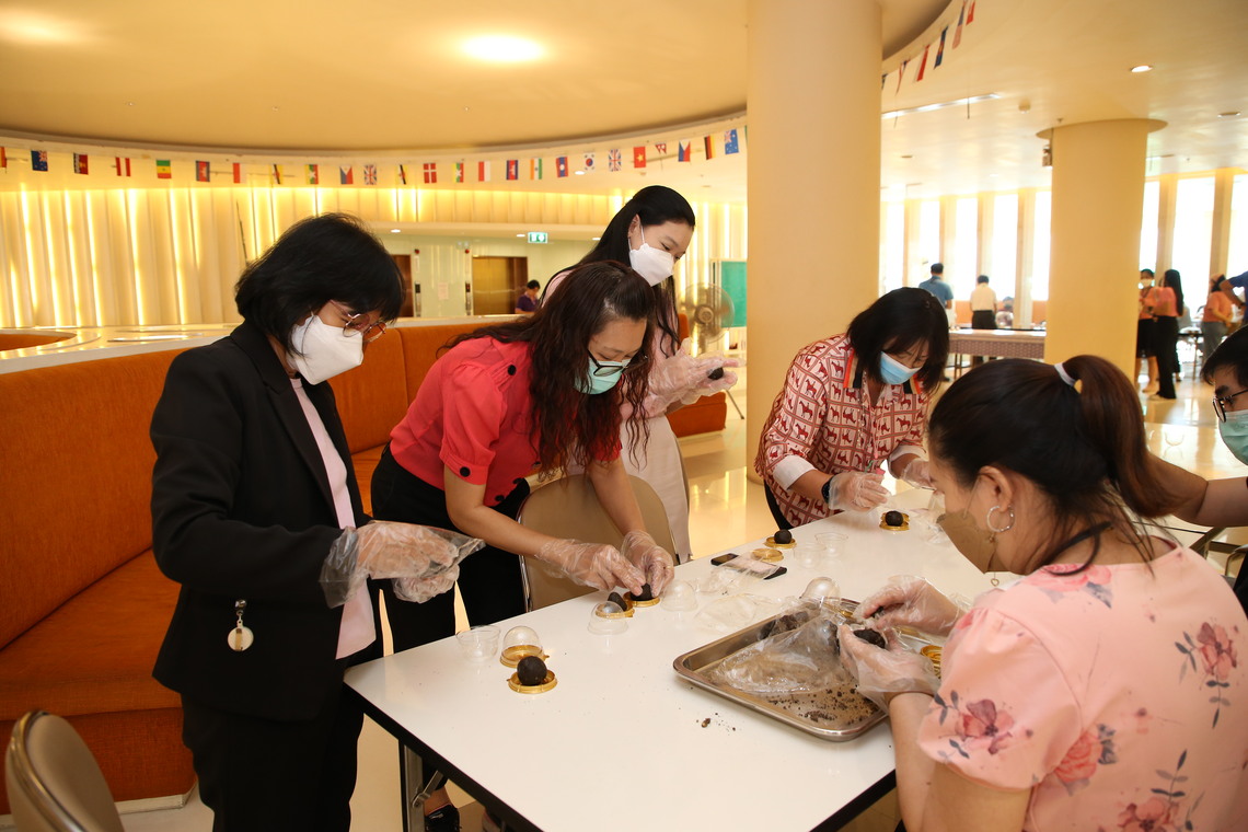 วันที่ 14 กุมภาพันธ์ 2566 คณะเทคโนโลยีสารสนเทศและการสื่อสาร มหาวิทยาลัยมหิดล (ICT Mahidol) นำโดย คณะทำงานเสริมสร้างความสุขและความผูกพัน จัดกิจกรรมส่งต่อความรัก “Cake Pops สื่อรักวาเลนไทน์” ให้แก่คณาจารย์และบุคลากร โดยเป็นการสอนทำขนมหวาน Cake Pops แสนอร่อย และรับการ์ดที่ระลึกท่านละ 1 ใบ เพื่อมอบให้กับคนที่รักในช่วงเทศกาลวาเลนไทน์ ณ โถงกลาง ชั้น 4 คณะ ICT มหาวิทยาลัยมหิดล ศาลายา