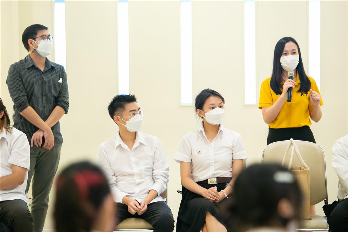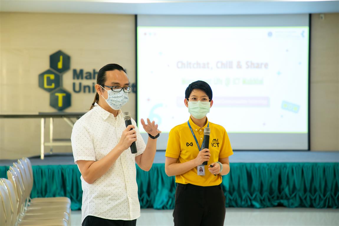 วันที่ 12 กันยายน 2565 คณะเทคโนโลยีสารสนเทศและการสื่อสาร (ICT) มหาวิทยาลัยมหิดล นำโดย ดร.ปวิตรา เลี่ยมรักษ์ รองคณบดีฝ่ายบริหารการศึกษา และรักษาการแทนรองคณบดีฝ่ายสื่อสารองค์กรและสร้างความผูกพัน และ Mr. Peter Chien อาจารย์สอนภาษาต่างประเทศ และ Chinese Activities Leader จัดกิจกรรม “Chitchat, Chill & Share More about Life @ ICT Mahidol” ให้กับนักศึกษาจีน ชั้นปีที่ 1-4 หลักสูตร วิทยาศาสตรบัณฑิต สาขาวิชาเทคโนโลยีสารสนเทศและการสื่อสาร (ICT หลักสูตรนานาชาติ) เพื่อให้คำแนะนำเกี่ยวกับการเรียนที่คณะ ICT การใช้ชีวิตในมหาวิทยาลัย และข้อมูลที่นักศึกษาควรรู้ เช่น ขั้นตอนการต่อวีซ่า โอกาสในการฝึกประสบการณ์วิชาชีพด้าน ICT ทั้งในและต่างประเทศ กฎระเบียบการแต่งกาย การใช้งานระบบ MyCourses การขอเอกสารต่างๆ ทางด้านการศึกษา และช่องทางการติดต่อระหว่างศึกษาอยู่ที่คณะ ICT ณ ห้อง Bits & Bytes Hall ชั้น 4 คณะ ICT มหาวิทยาลัยมหิดล