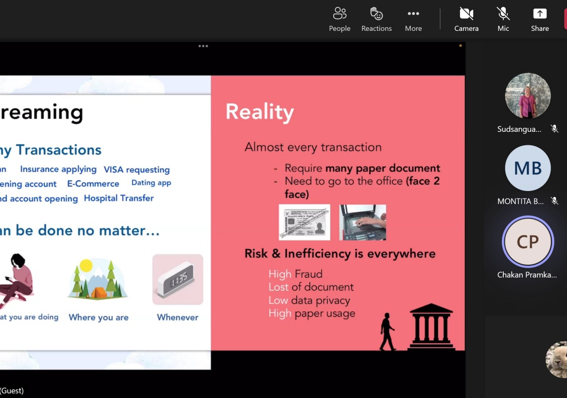 วันที่ 16 มีนาคม 2565 คณะเทคโนโลยีสารสนเทศและการสื่อสาร (ICT) มหาวิทยาลัยมหิดล นำโดย รศ. ดร. สุดสงวน งามสุริยโรจน์ อาจารย์ประจำคณะเทคโนโลยีสารสนเทศและการสื่อสาร จัดบรรยายพิเศษในหัวข้อ “Digital Identity: โครงสร้างพื้นฐานสำคัญสำหรับการธุรกรรมออนไลน์” โดยได้รับเกียรติจาก ดร. ฉกรรจ์ พราหมณ์แก้ว Blockchain Architect บริษัท เนชั่นแนลดิจิทัล ไอดี จำกัด (NDID) เป็นวิทยากรผู้เชี่ยวชาญและมีประสบการณ์ด้านโครงสร้างพื้นฐาน และการทำธุรกรรมออนไลน์ มาบรรยายให้ความรู้กับนักศึกษาระดับปริญญาตรี ชั้นปีที่ 1 หลักสูตรวิทยาศาสตรบัณฑิต สาขาวิทยาการและเทคโนโลยีดิจิทัล (DST) คณะเทคโนโลยีสารสนเทศและการสื่อสาร ประจำภาคการศึกษาที่ 2 ปีการศึกษา 2564 ในรูปแบบออนไลน์ ผ่านโปรแกรม Microsoft Teams