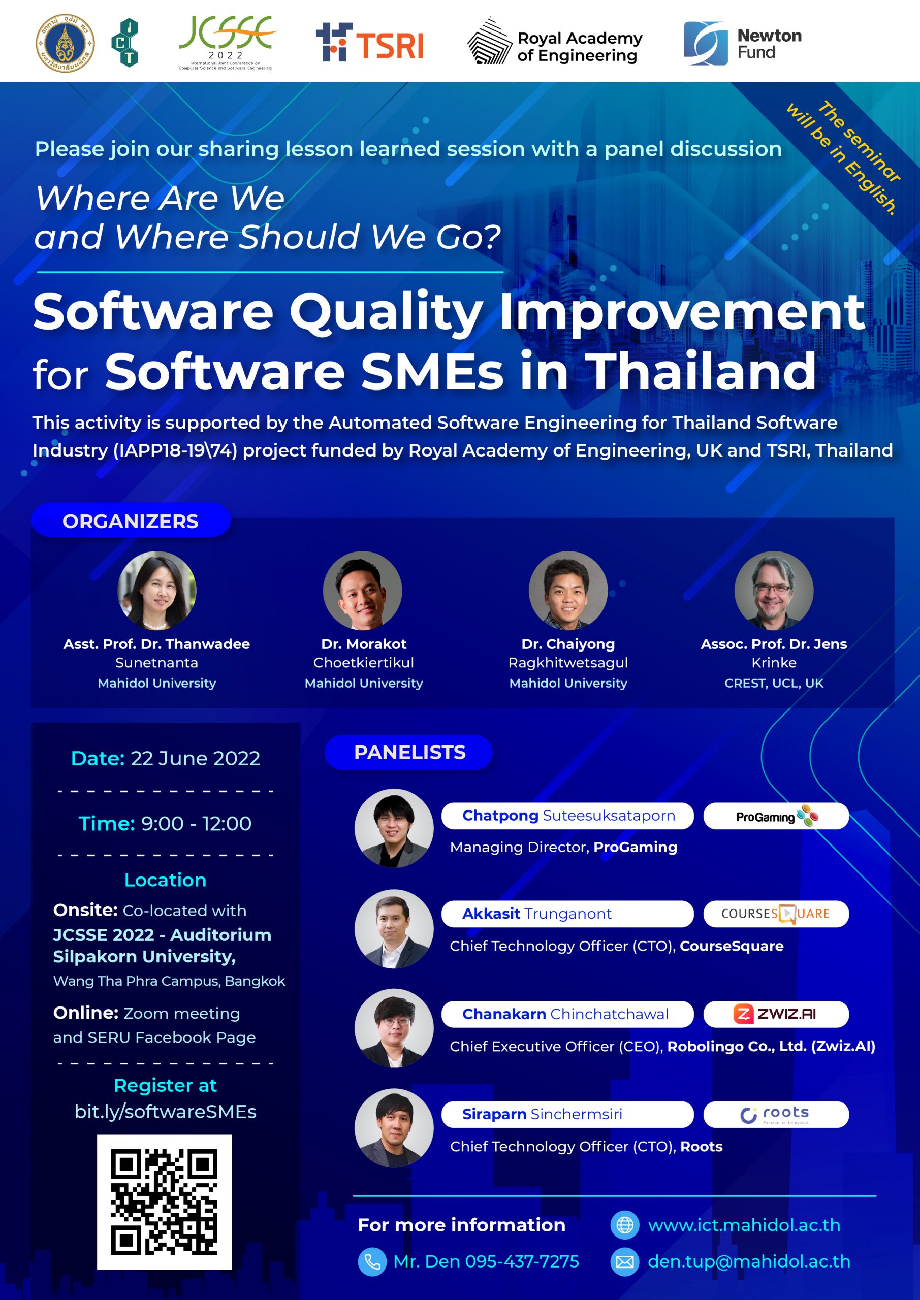 Co-located with JCSSE 2022 – Auditorium, Silpakorn University, Wang Tha Phra Campus,